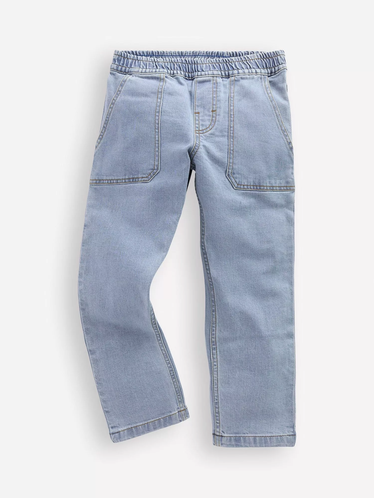 Who needs zips and buttons when an elasticated pull-on waist makes getting dressed so easy. These denim jeans from Mini Boden have a relaxed fit and two deep front pockets.