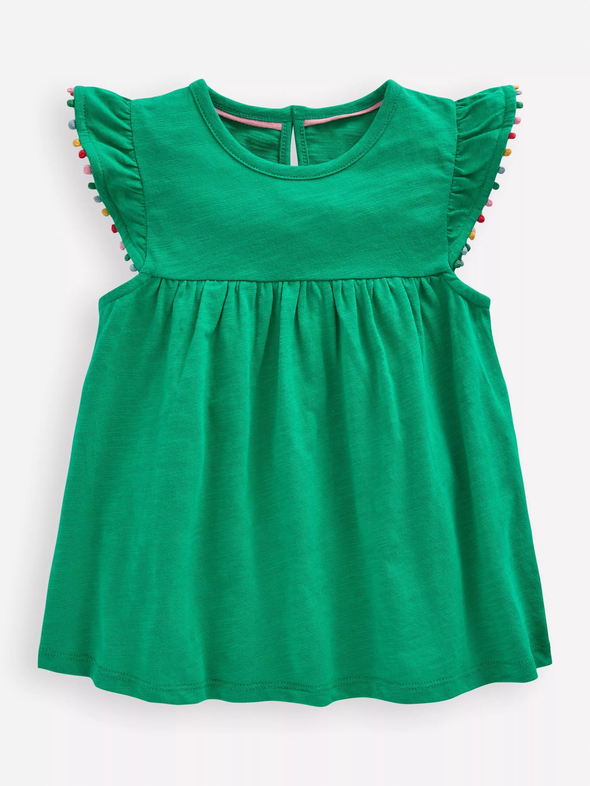 Mini BodenKids' Frill Sleeve Top, Bright Emerald