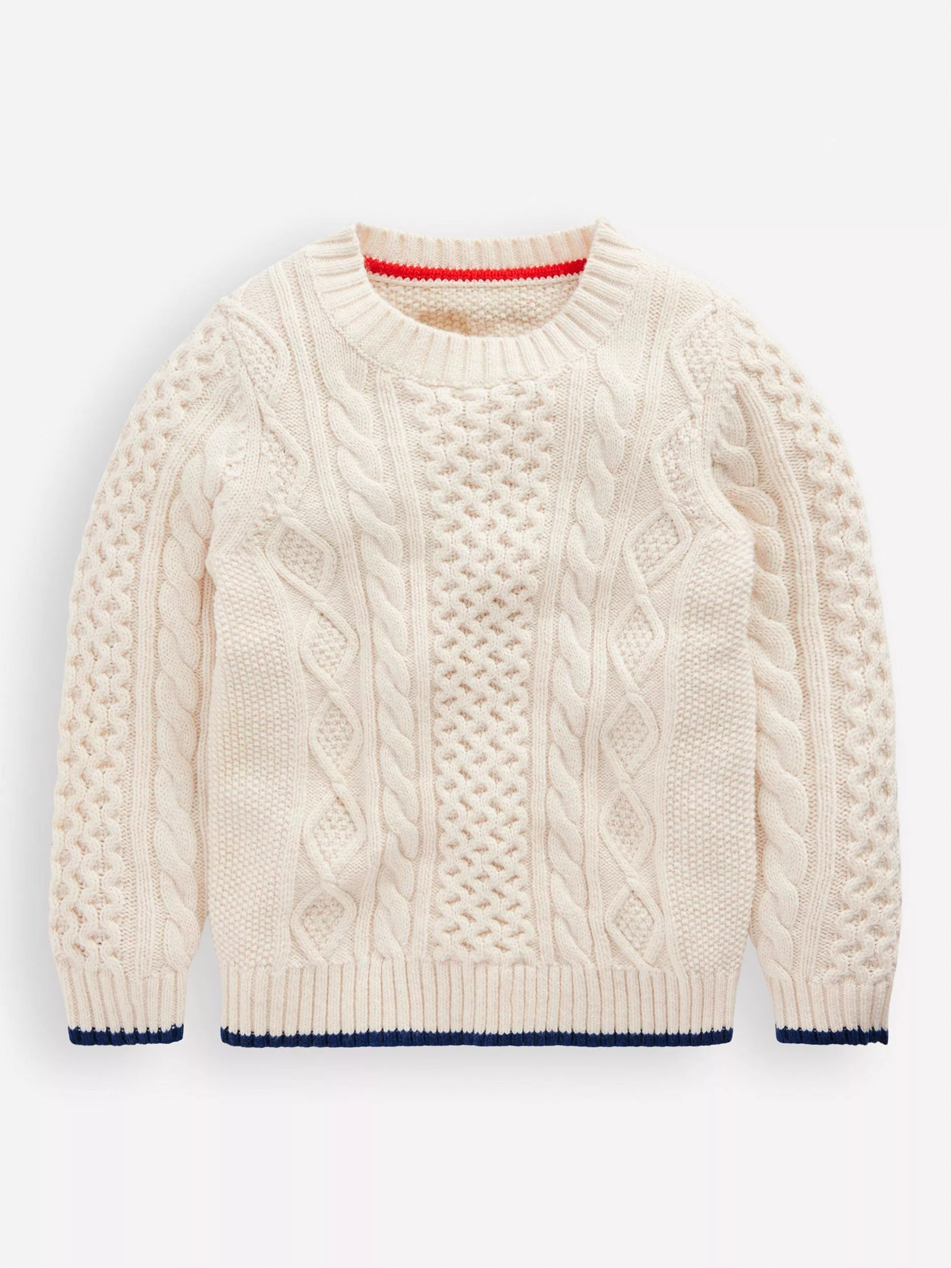 A cosy cable knit jumper is up there with conker picking as a cold weather essential. The intricate design and warm wool mix make it an heirloom style they'll wear into spring too.