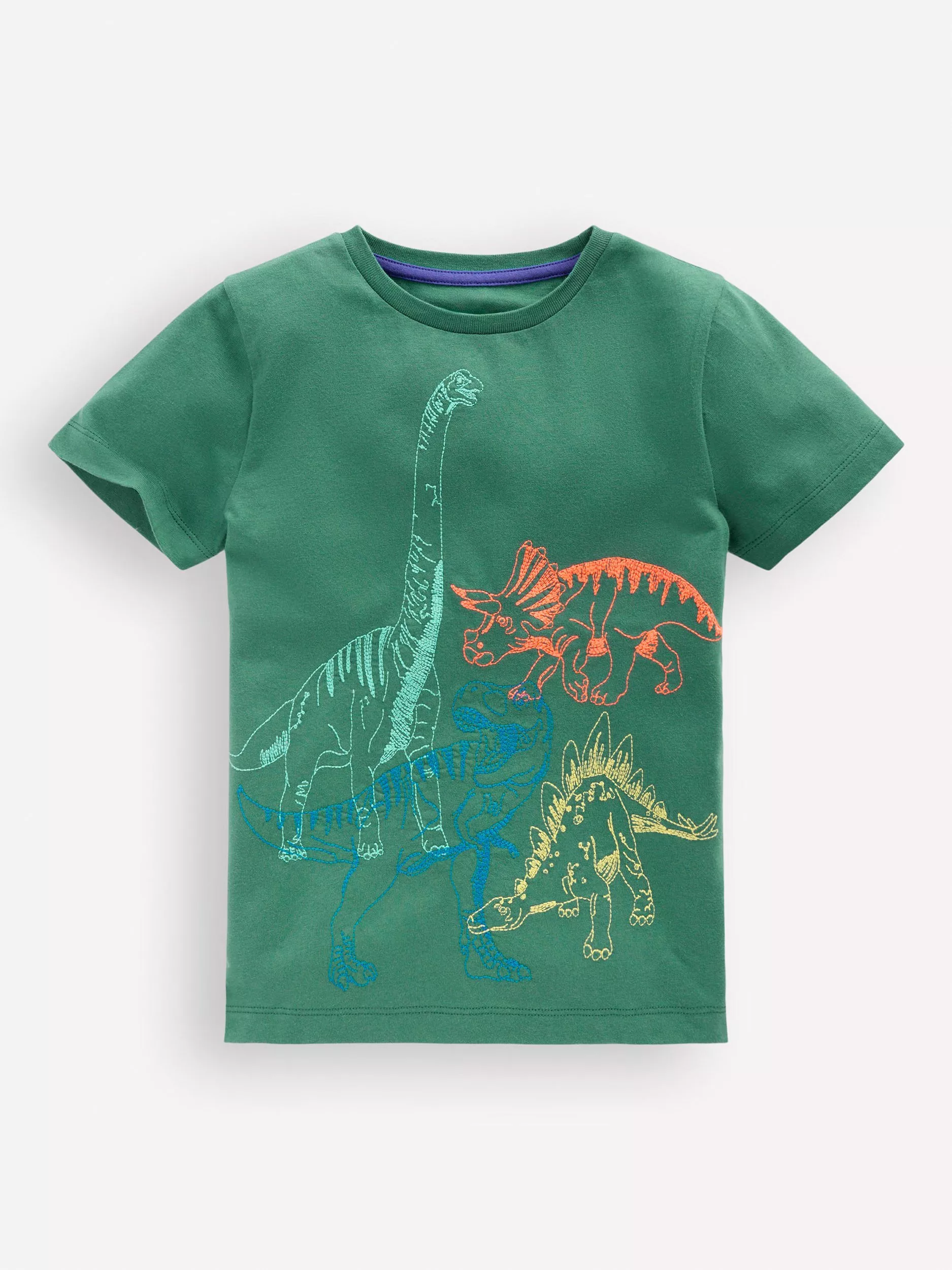 Mini BodenKids' Linear Stitch T-Shirt, Green