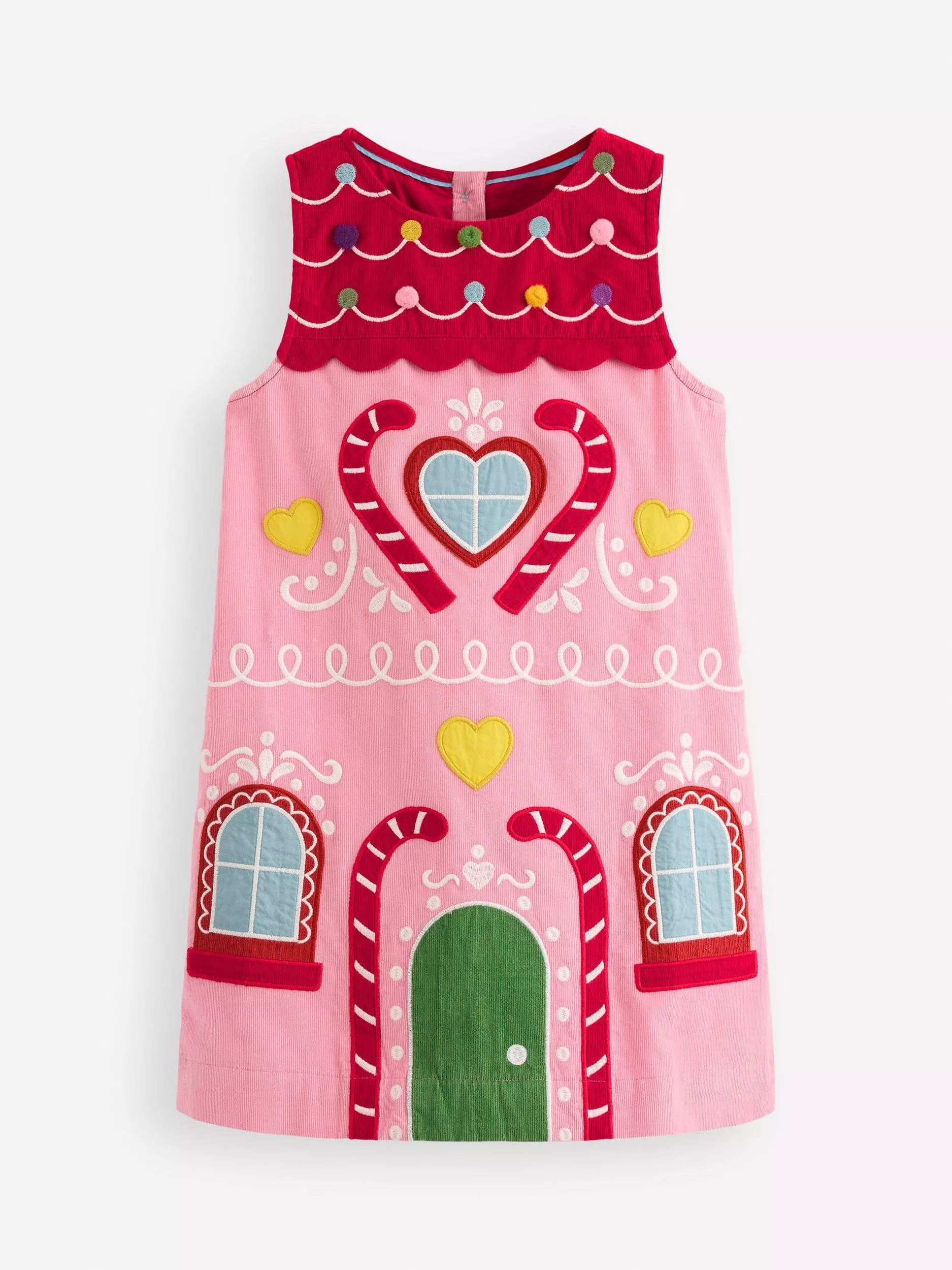 A gingerbread house in dress form that looks good enough to eat? Cue Mini excitement. This embroidered style is spun from pure cotton, machine washable and has pockets. So a thumbs up for parents too.