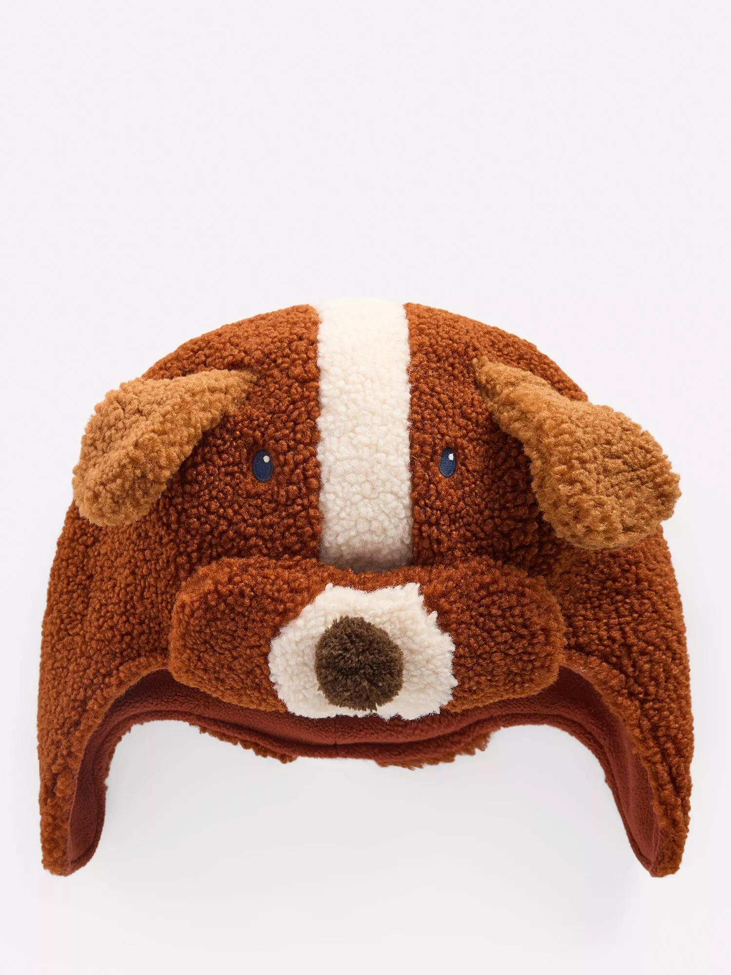 Little ones will love this fun trapper hat, with its floppy ears and embroidered details. Its soft borg and combed cotton make it a super-cosy layer on chilly days.