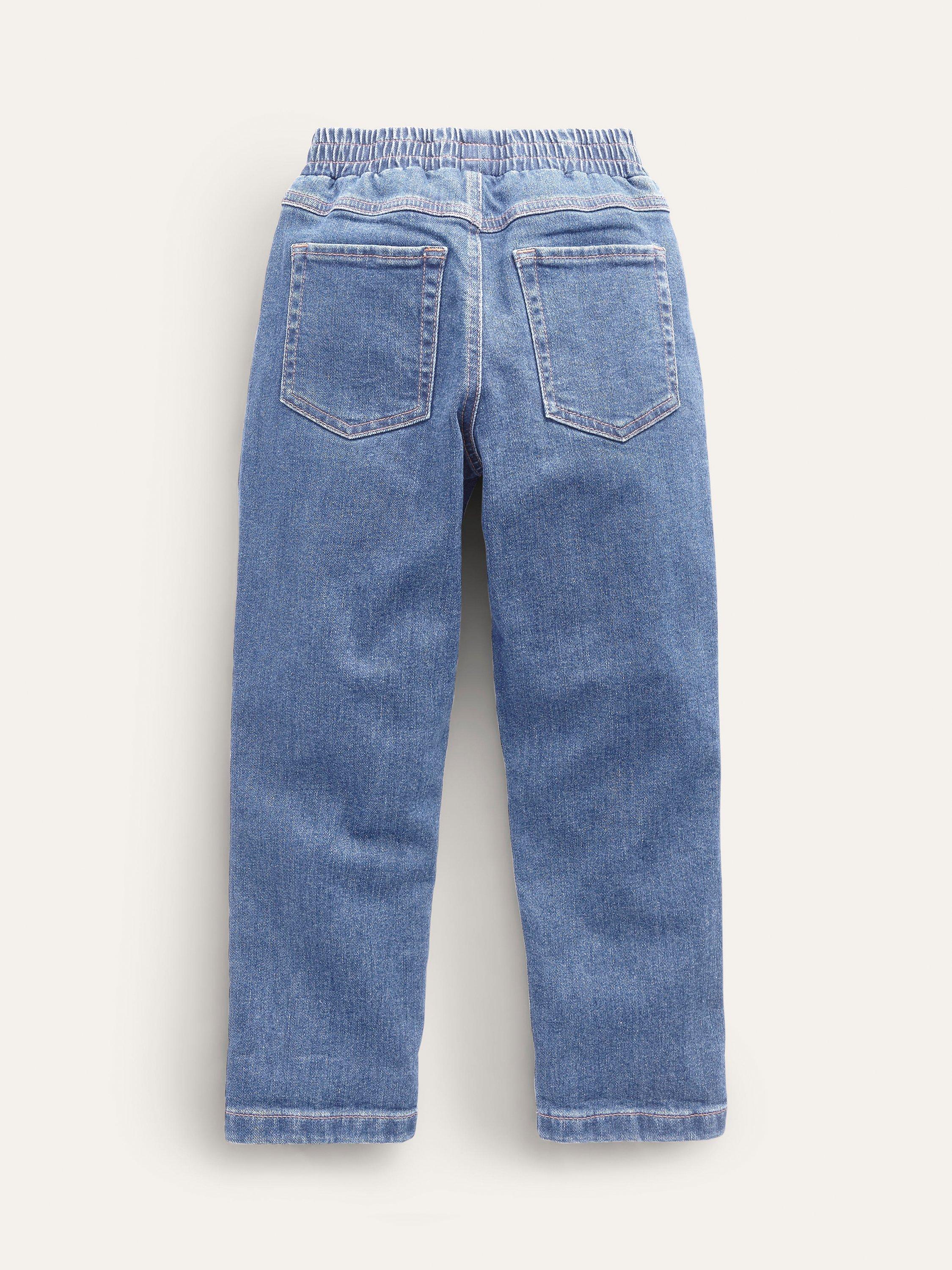 Mini Boden swapped the zips and buttons on these denim jeans for an easy, elasticated pull-on waist. They have a comfy relaxed fit and are finished with two front pockets.