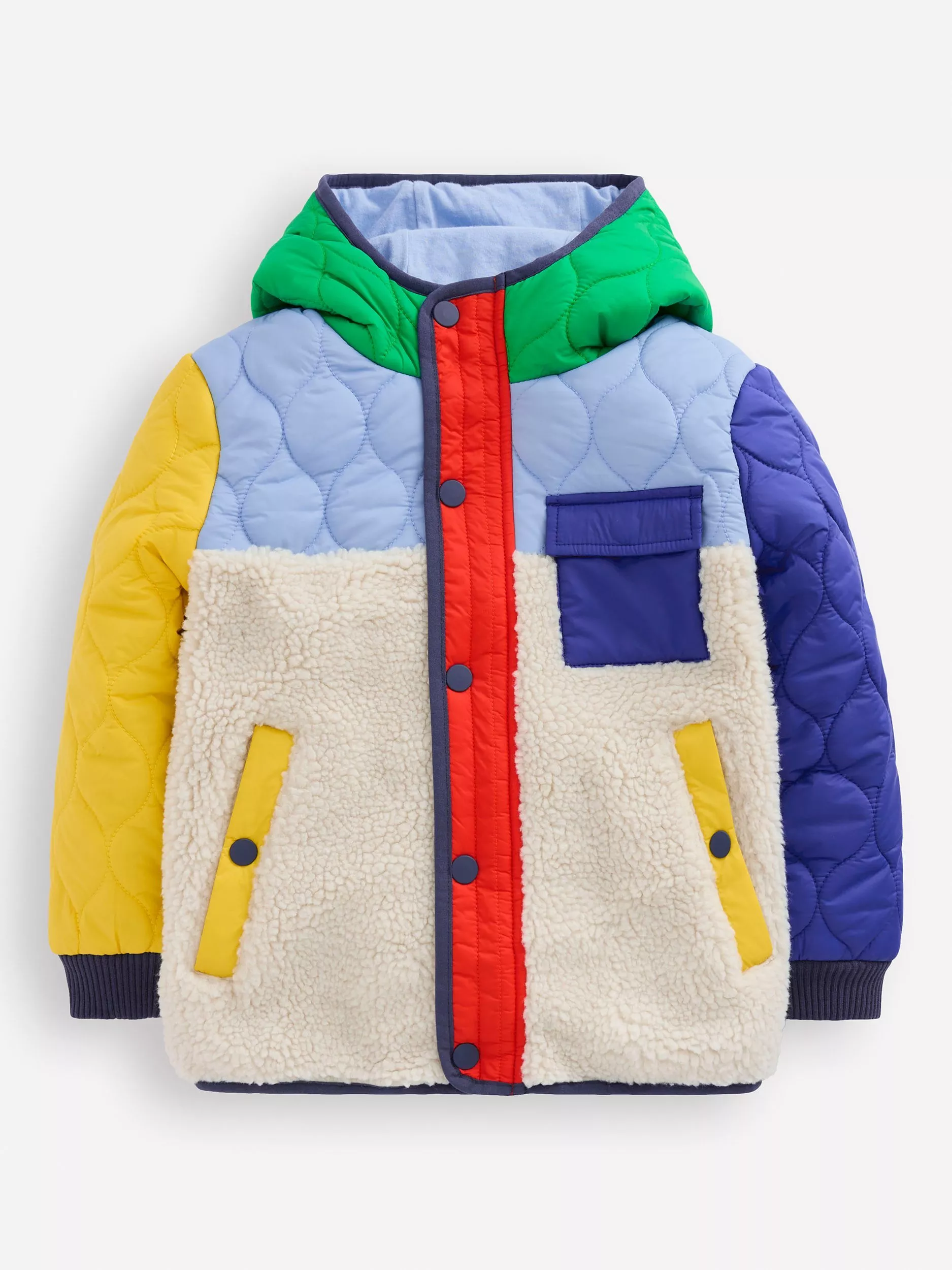 Mini BodenKids' Quilted Borg Jacket, Multi