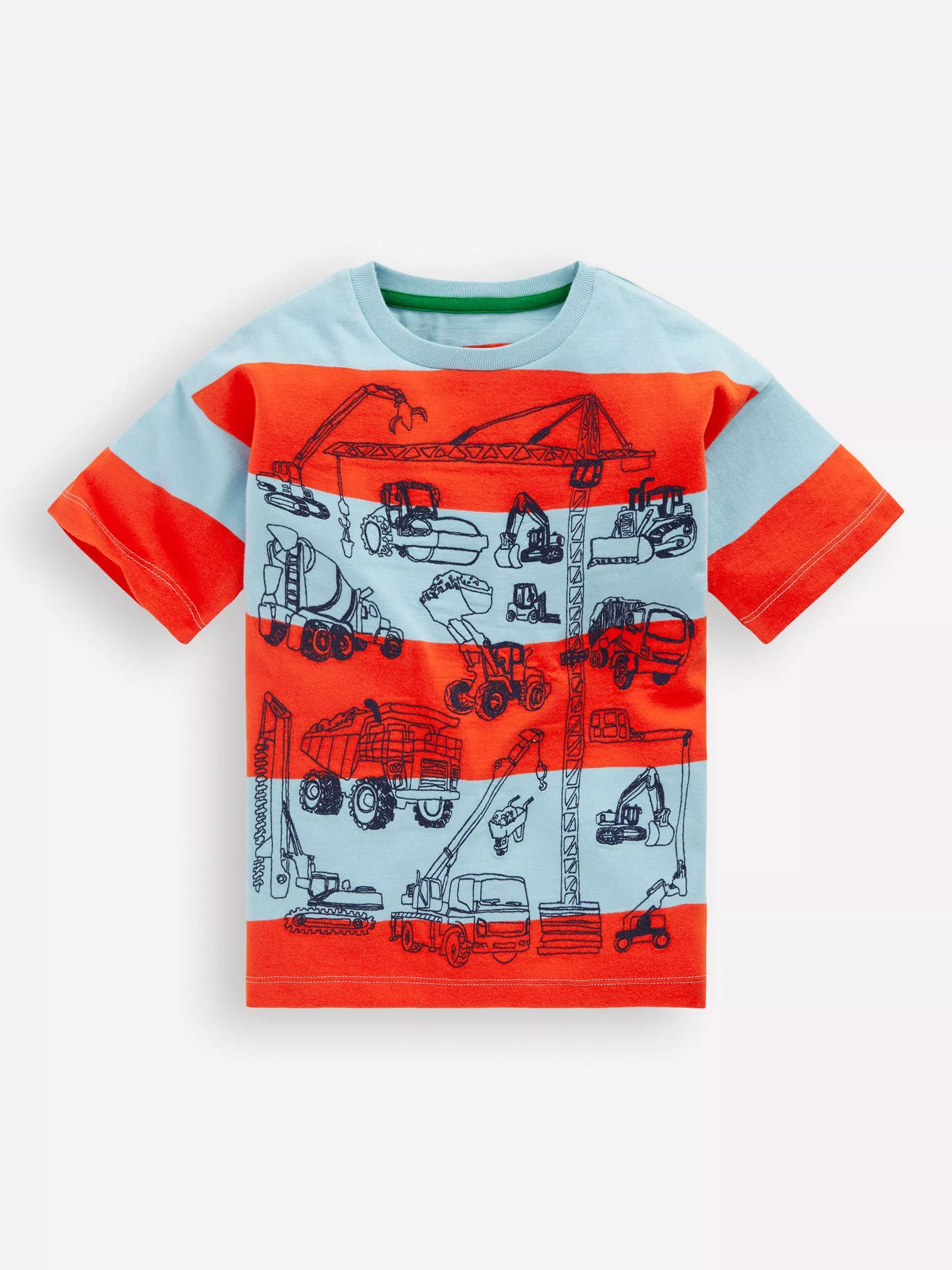 Mini BodenKids' Relaxed Embroidered Construction T-Shirt, Multi