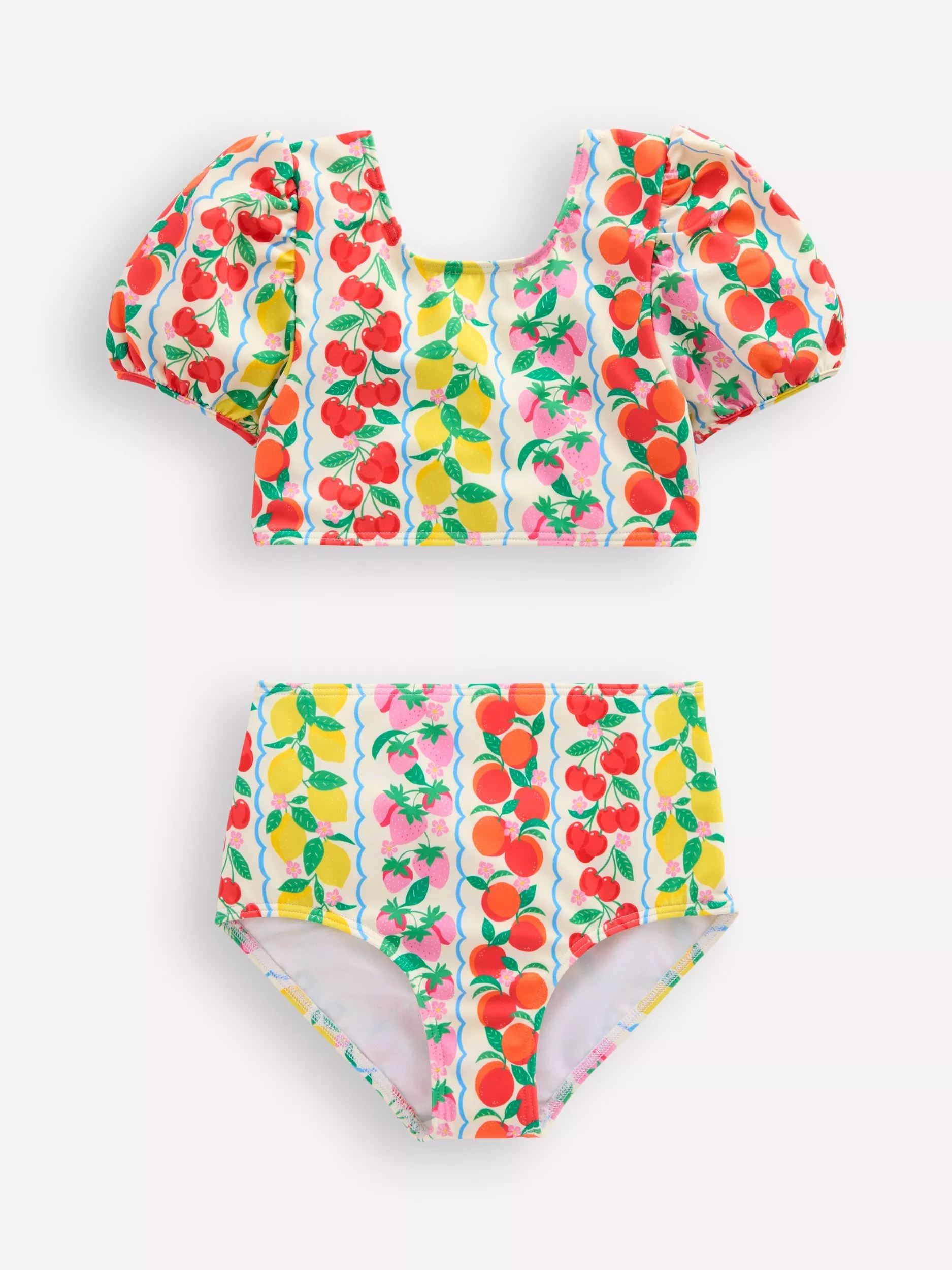 Mini BodenKids' Sandy Puff Sleeve Bikini, Rainbow Fruit Stripe