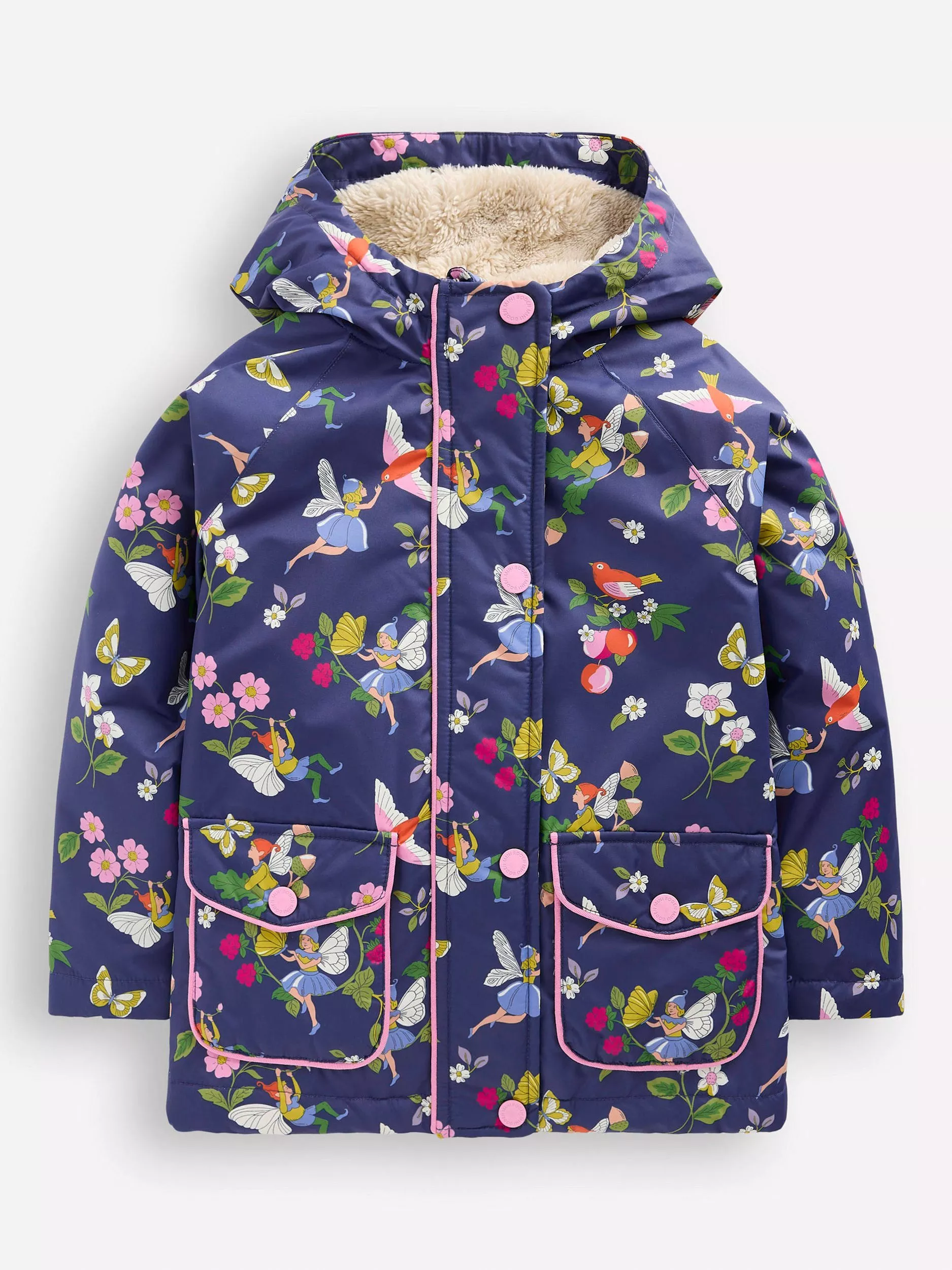 Staying dry is fun with this colourful and clever anorak. Mini Boden pulled out all the best tricks to keep the rain out, while the faux-sherpa lining will keep little ones snug.