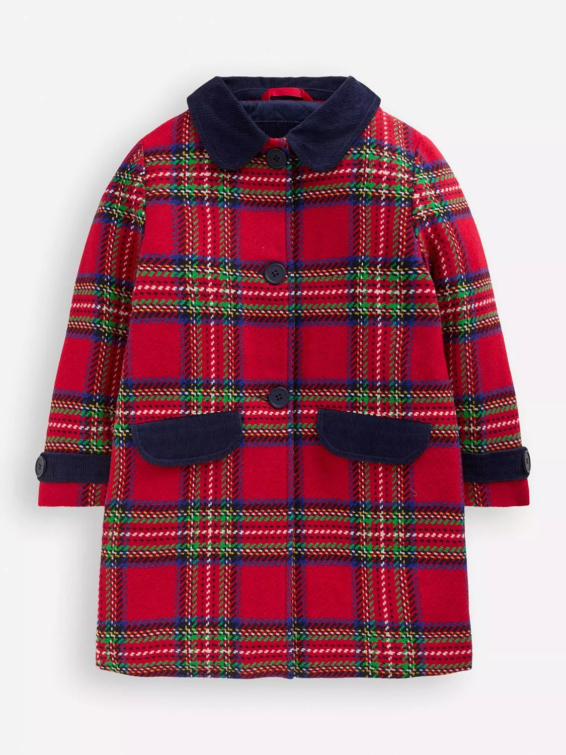 This classic coat is made from a warm wool blend with a contrasting corduroy collar. It’s lined with soft brushed cotton so they can warm and snug, even when they’re looking smarter.