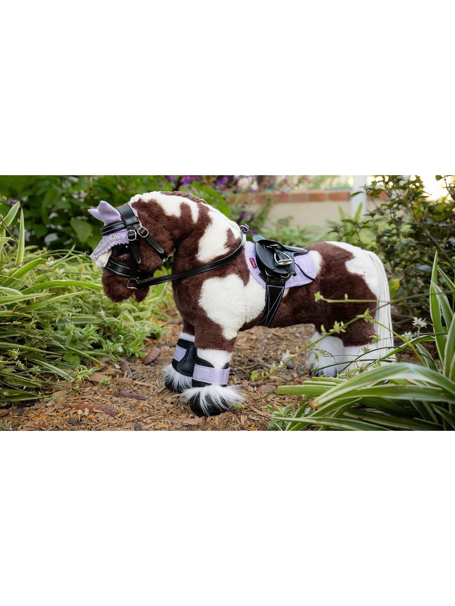Dazzle is a gorgeous brown and white skewbald pony with fluffy feathers and a plaitable mane and tail. His coat is super-soft - perfect for brushing and looking after and he comes with a posh horse box that turns inside out to become a luxury stable!