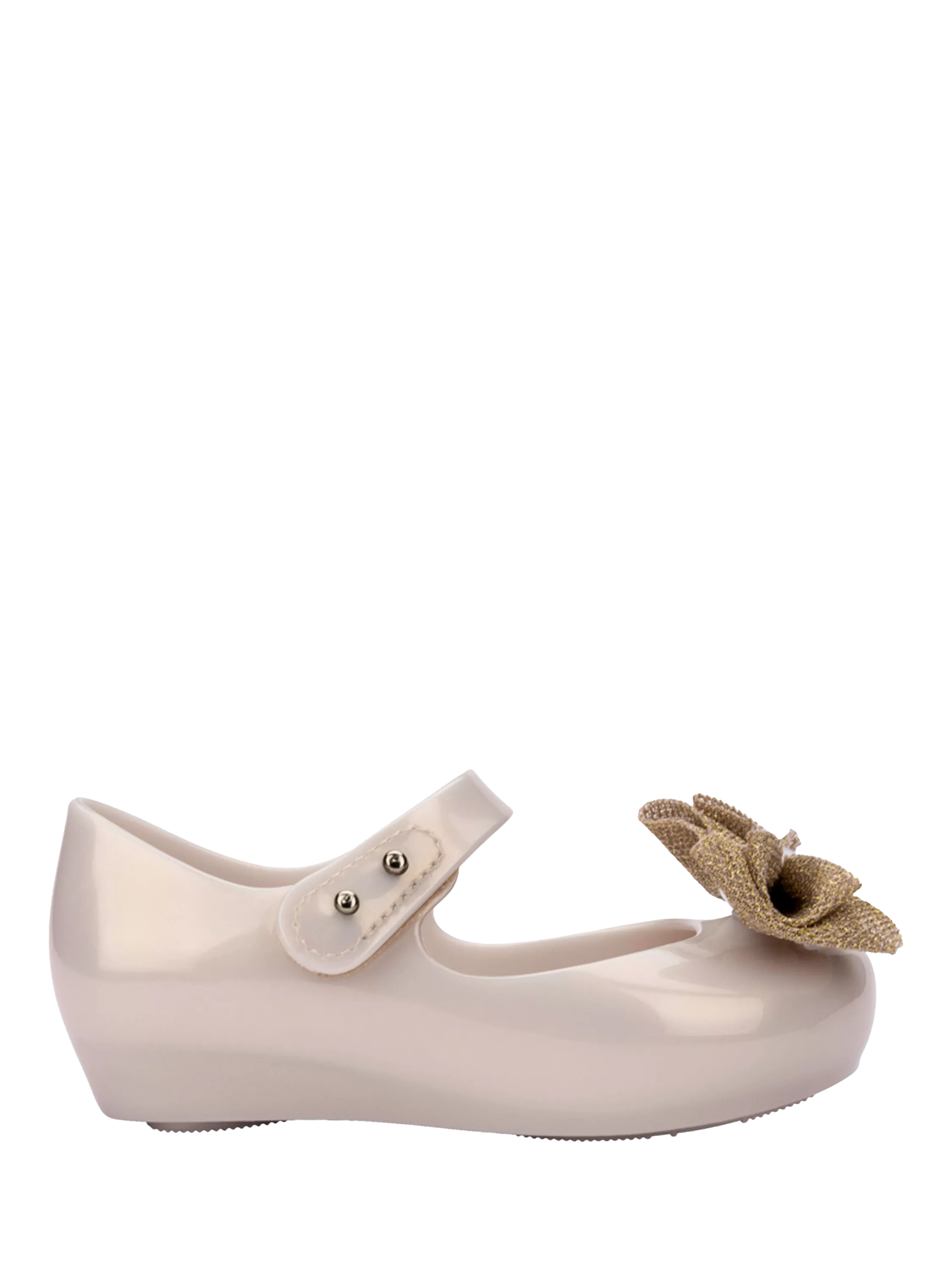 Charming ballet flats, made from soft PVC and elevated with a showcase bow on the toe. They fasten with a buckle for a secure and comfortable fit.