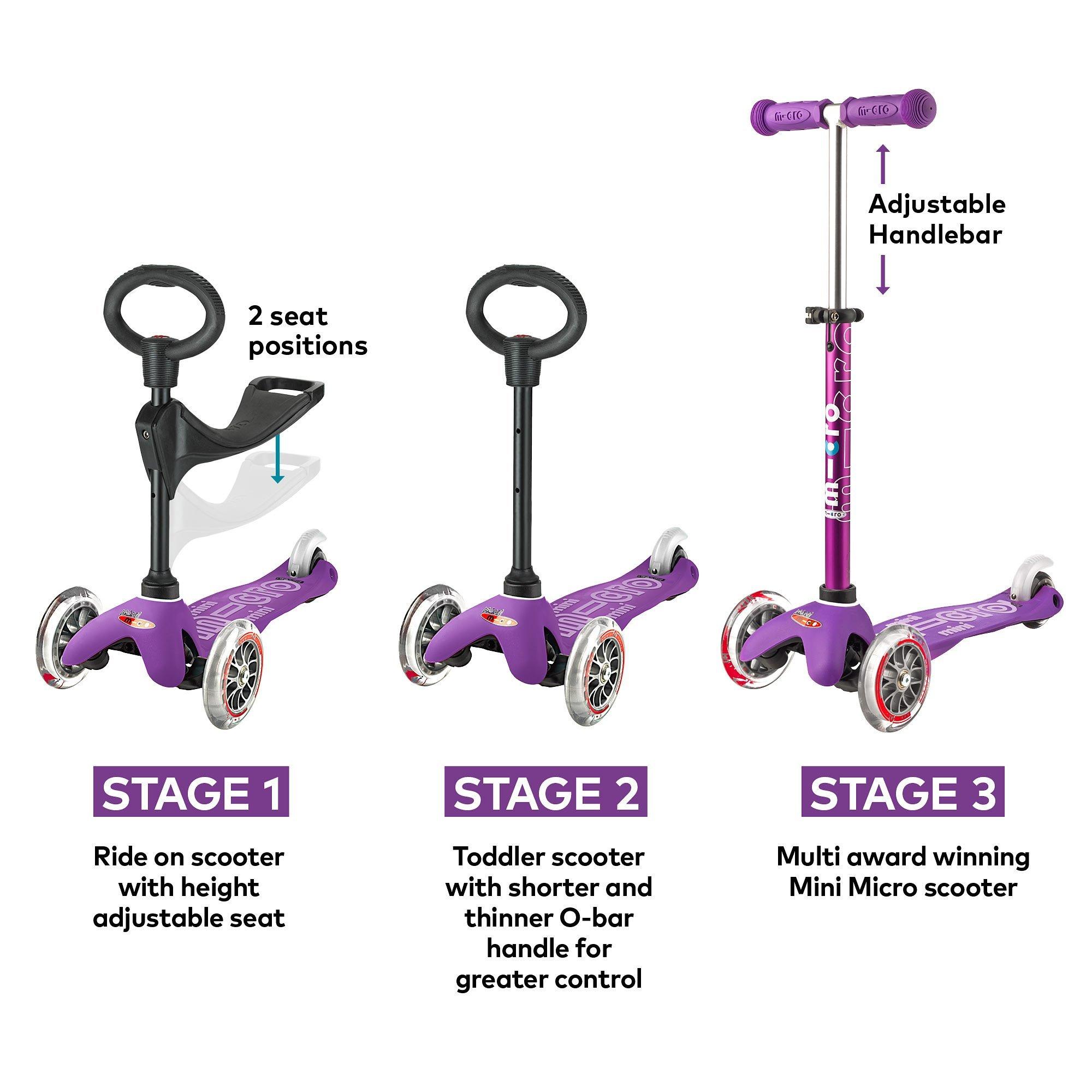 Enjoy hours of fun for years to come with the award-winning Micro Mini Micro 3-in-1 Deluxe Scooter!
