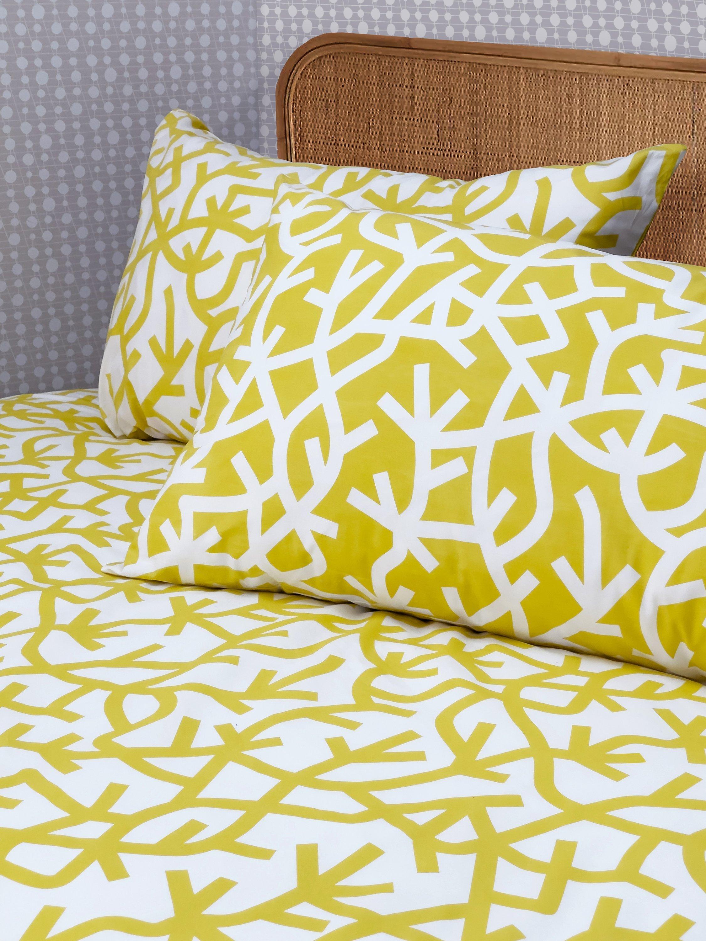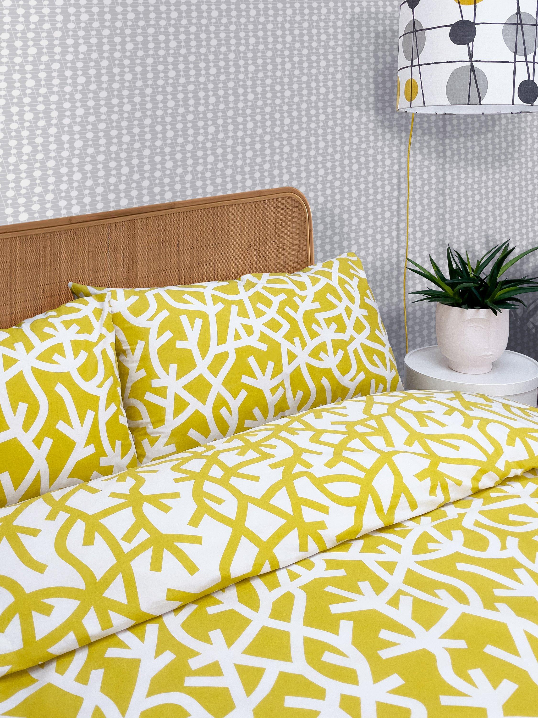 This large-scale graphic pattern is based on the branch formations of the oak tree depicted in Mini Moderns' Moordale wallpaper. Together; the two designs became key prints of their autobiographical Saturday Night/Sunday Morning collection.