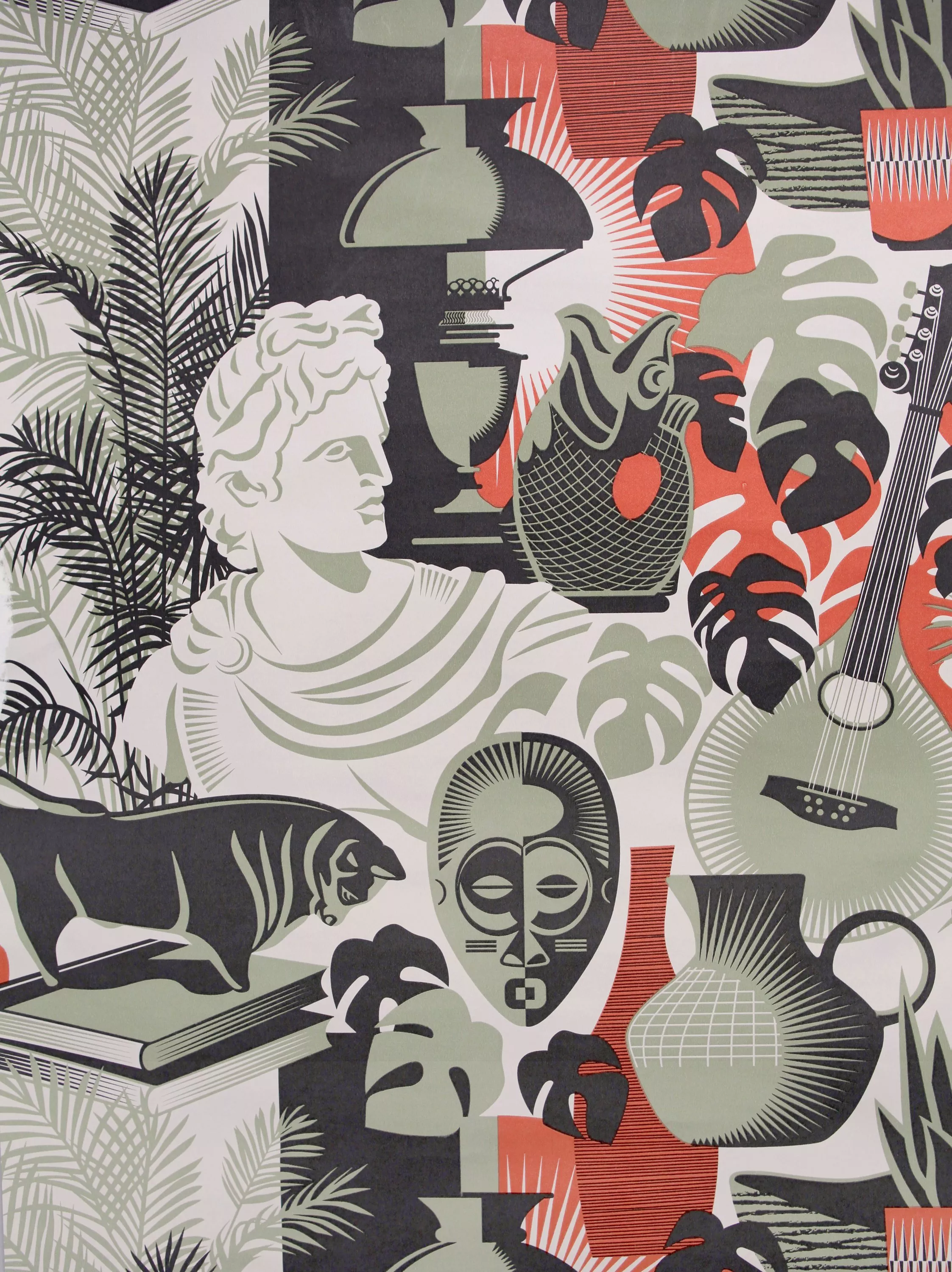 A design featuring foliage and an eclectic mix of still life objects found in the art room.