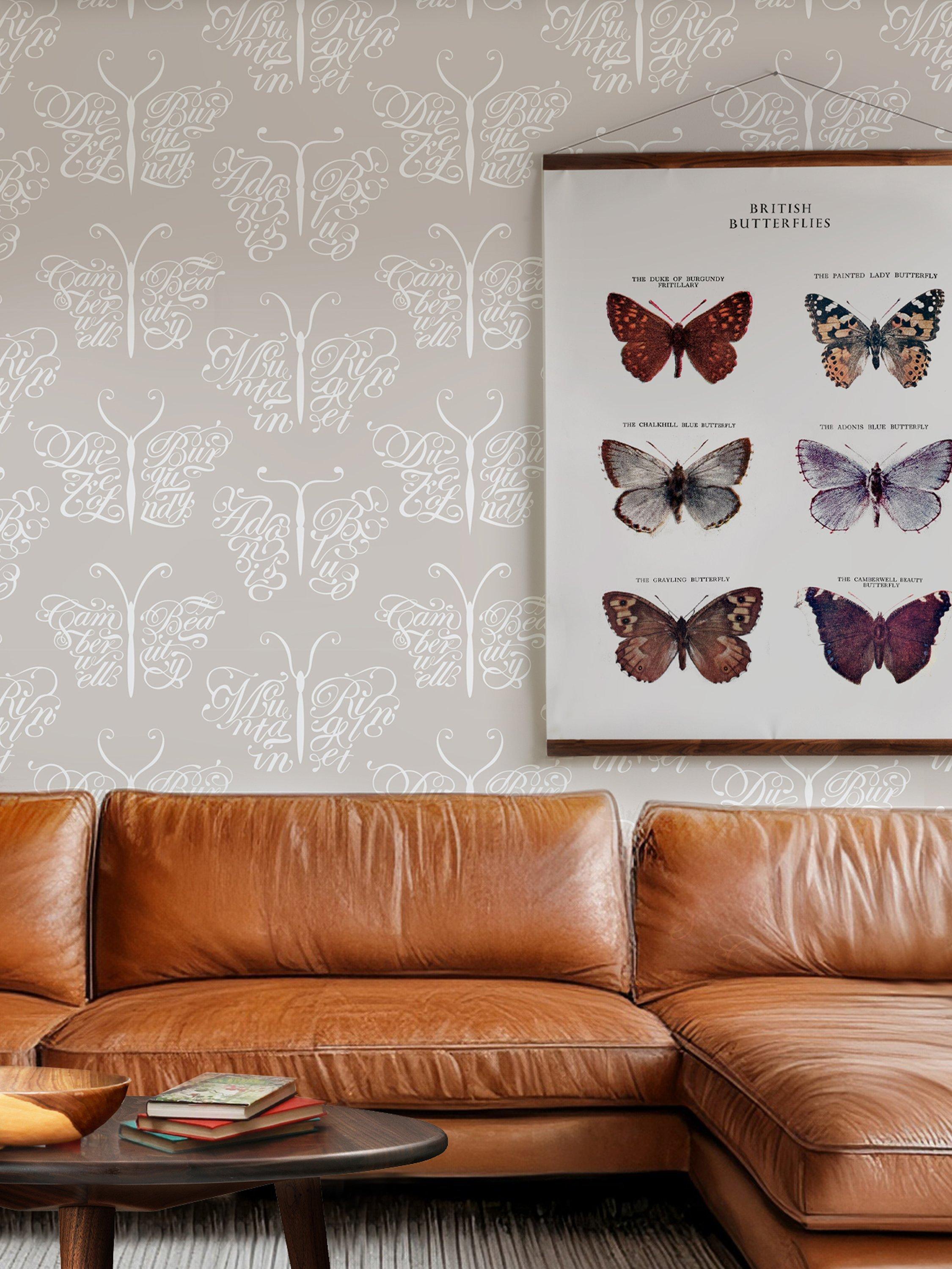 A fun butterfly design made up of scrolled lettering.