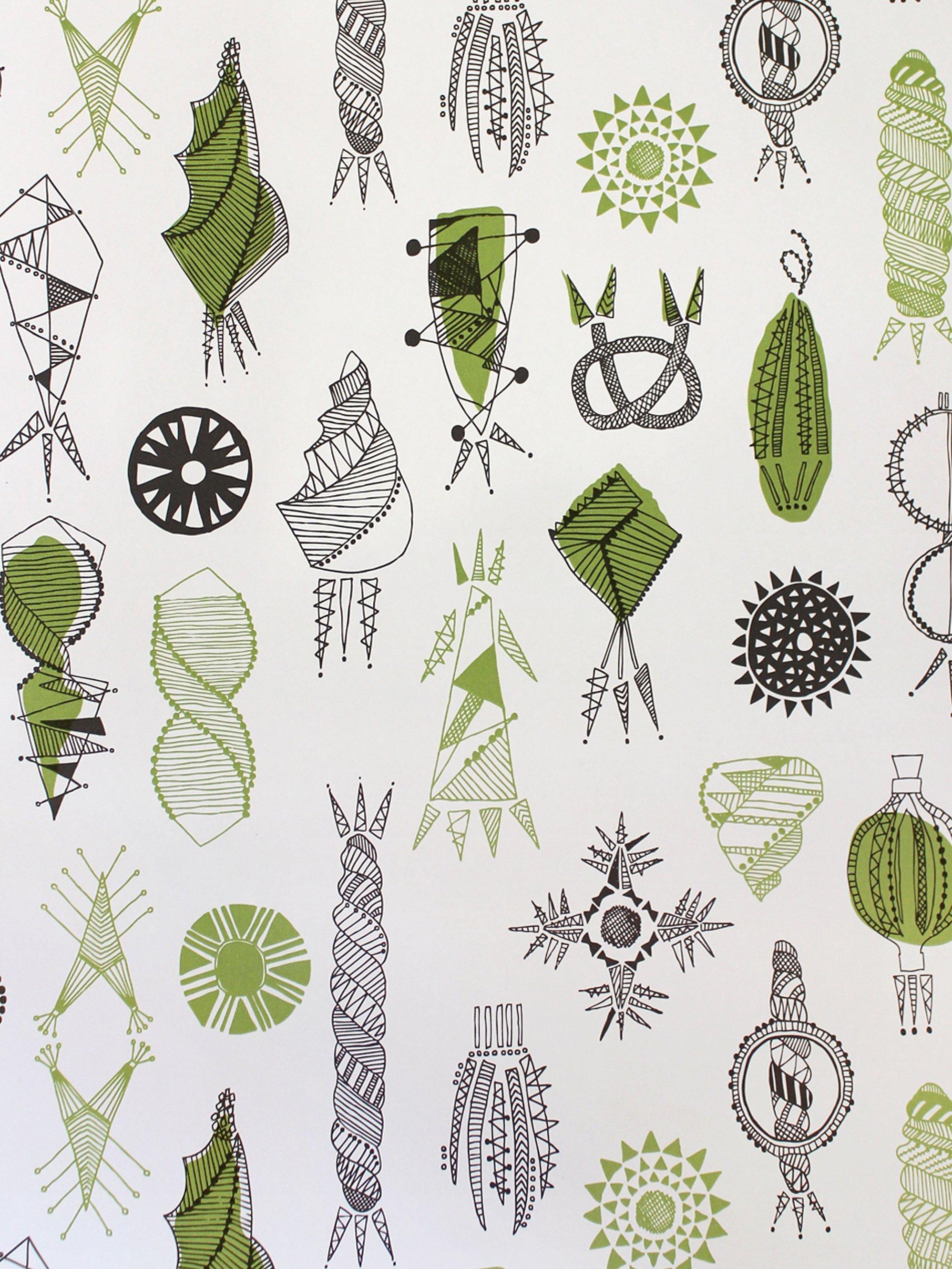 This design features hand drawn icons and symbols based on the organic shapes of corn dollies.