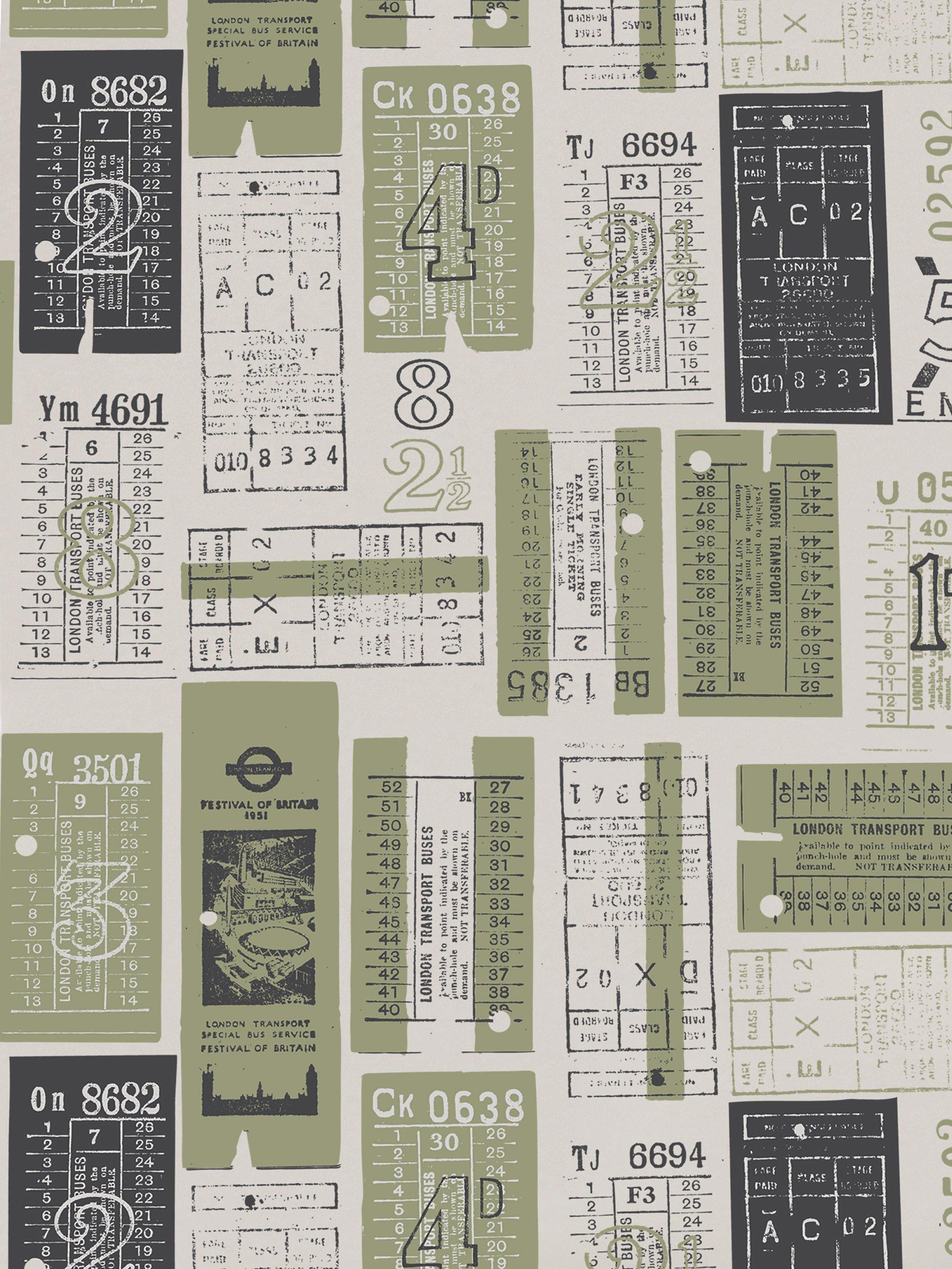 An unusual print featuring London Transport tram, train and bus tickets.