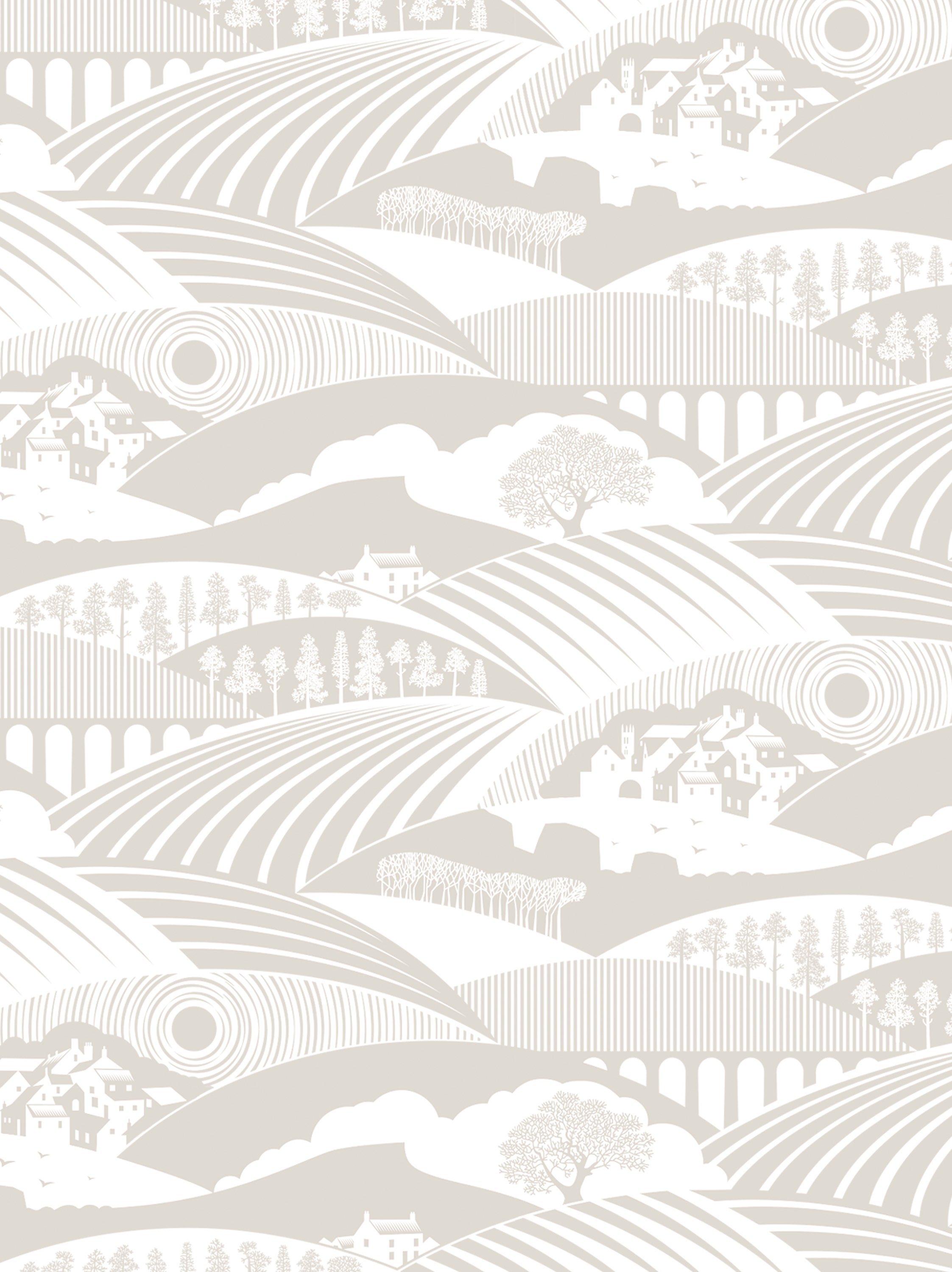 This design features rolling hills of moors and dales, punctuated by farm houses and rows of Douglas firs.