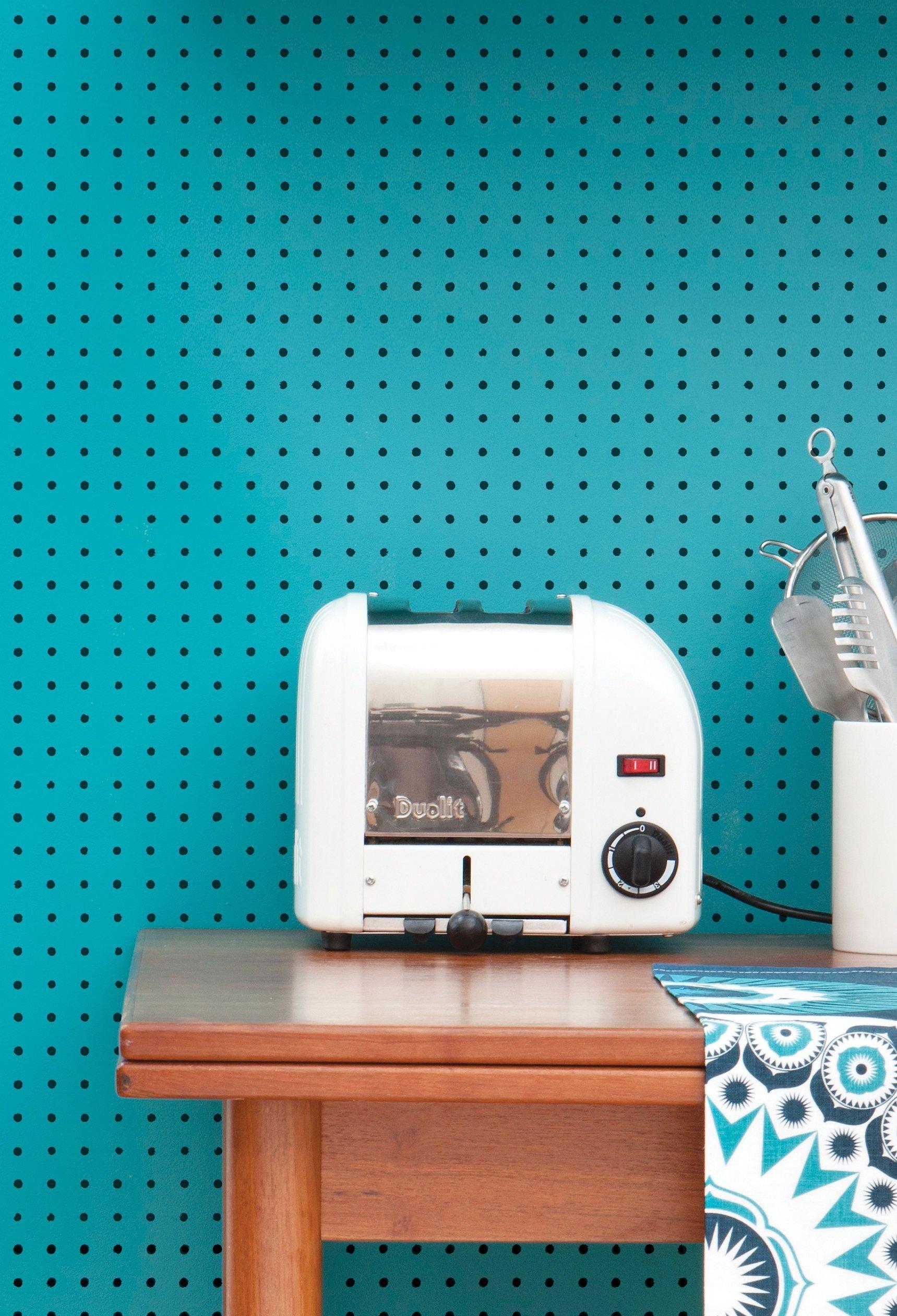 This peg-board trompe-l'œil takes inspiration from displays in junk shops and hardware stores.