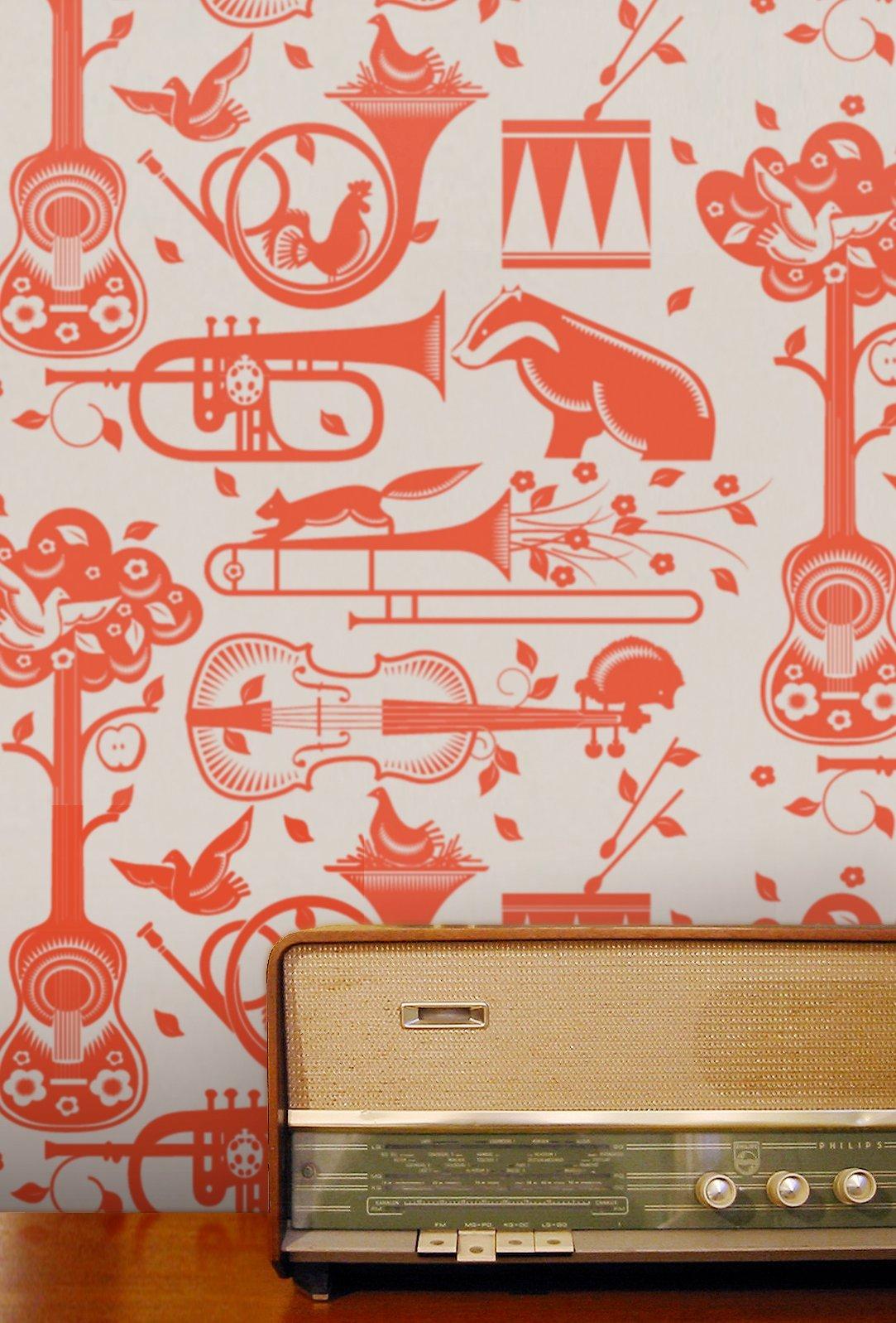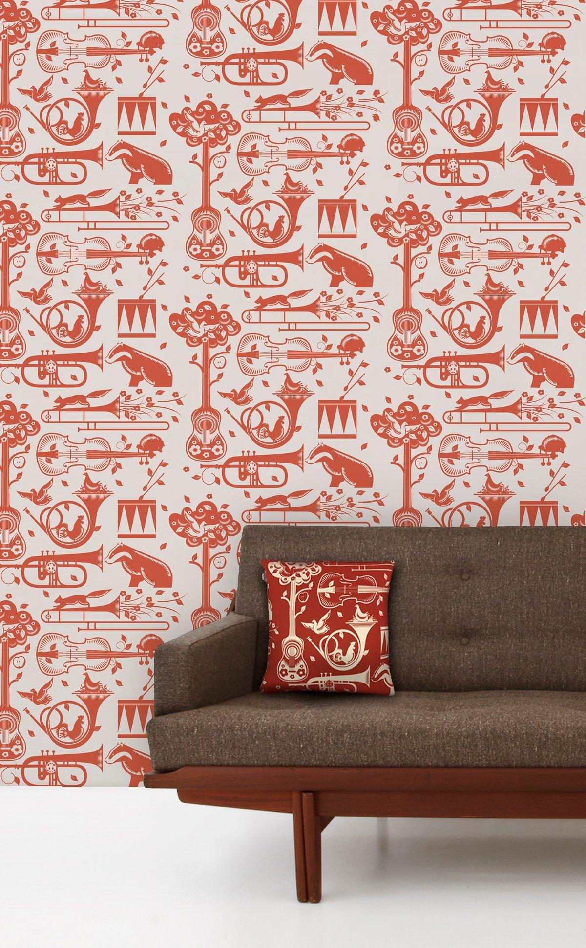 A wonderfully eccentric print with a variety of woodland creatures and musical instruments.