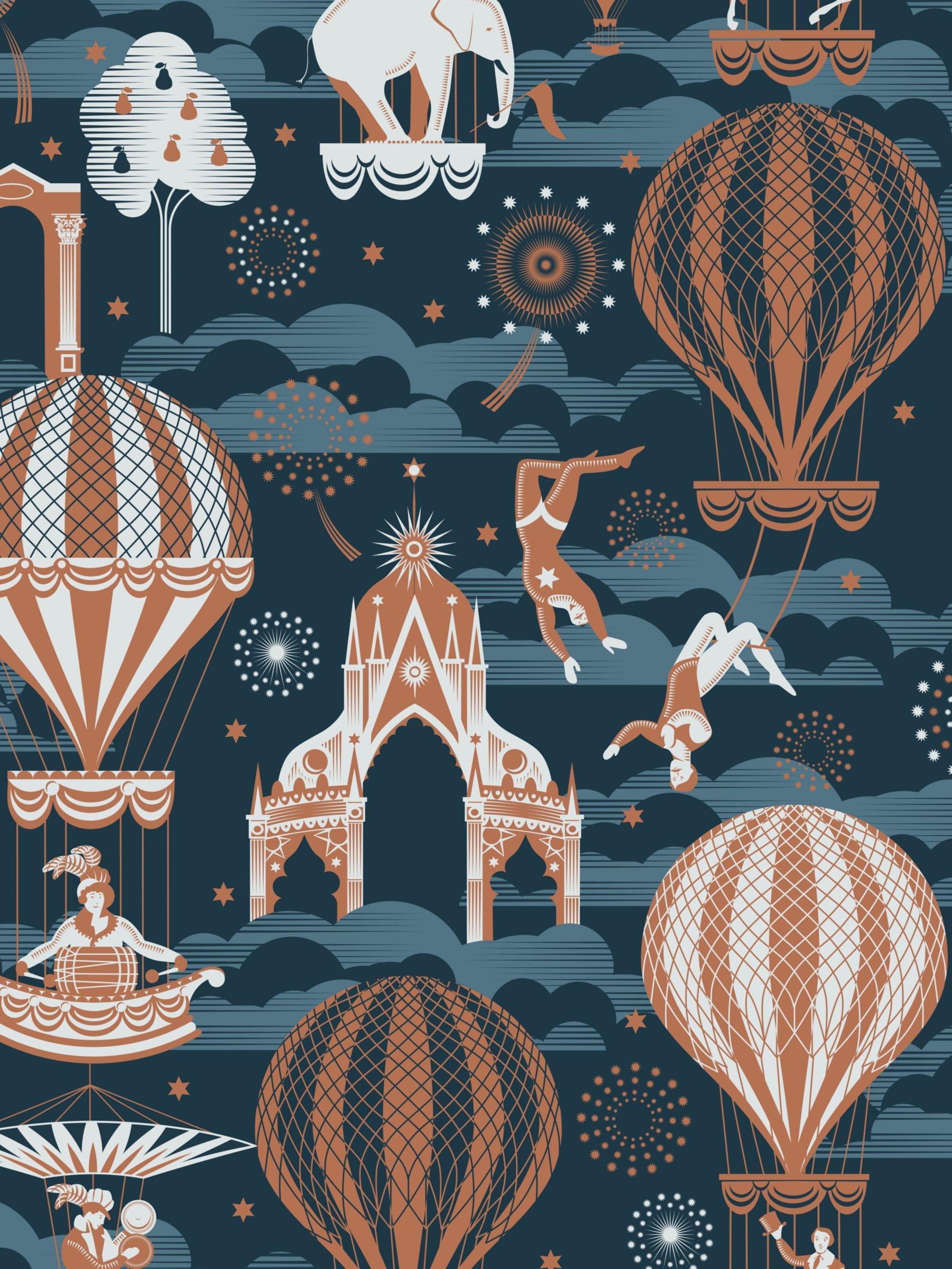 Created in collaboration with the Museum of London, this design features the 19th century sights and events at the Vauxhall Pleasure Gardens.