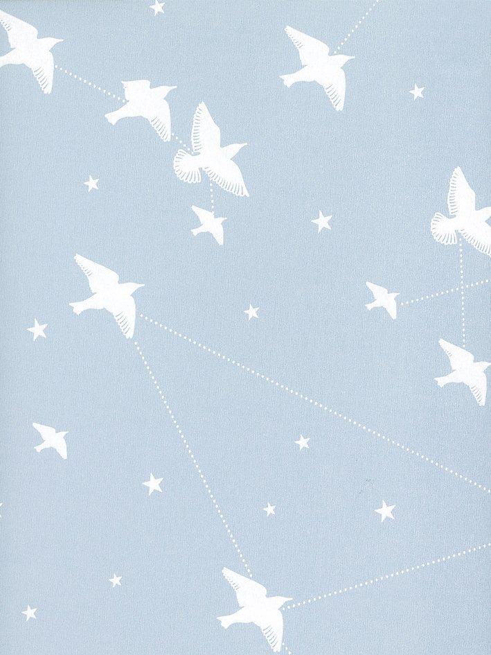 A murmuration of starlings swoop among star constellations.