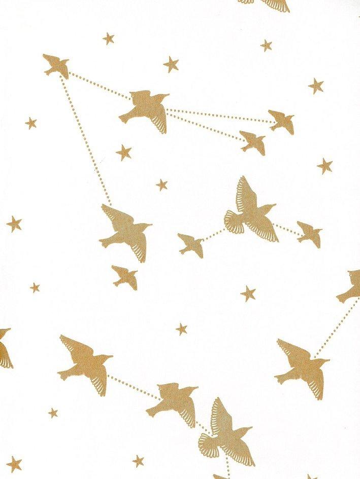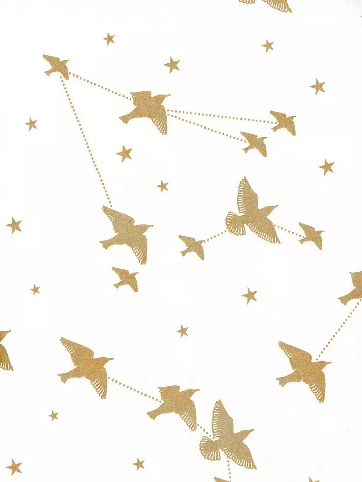 A murmuration of starlings swoop among star constellations.