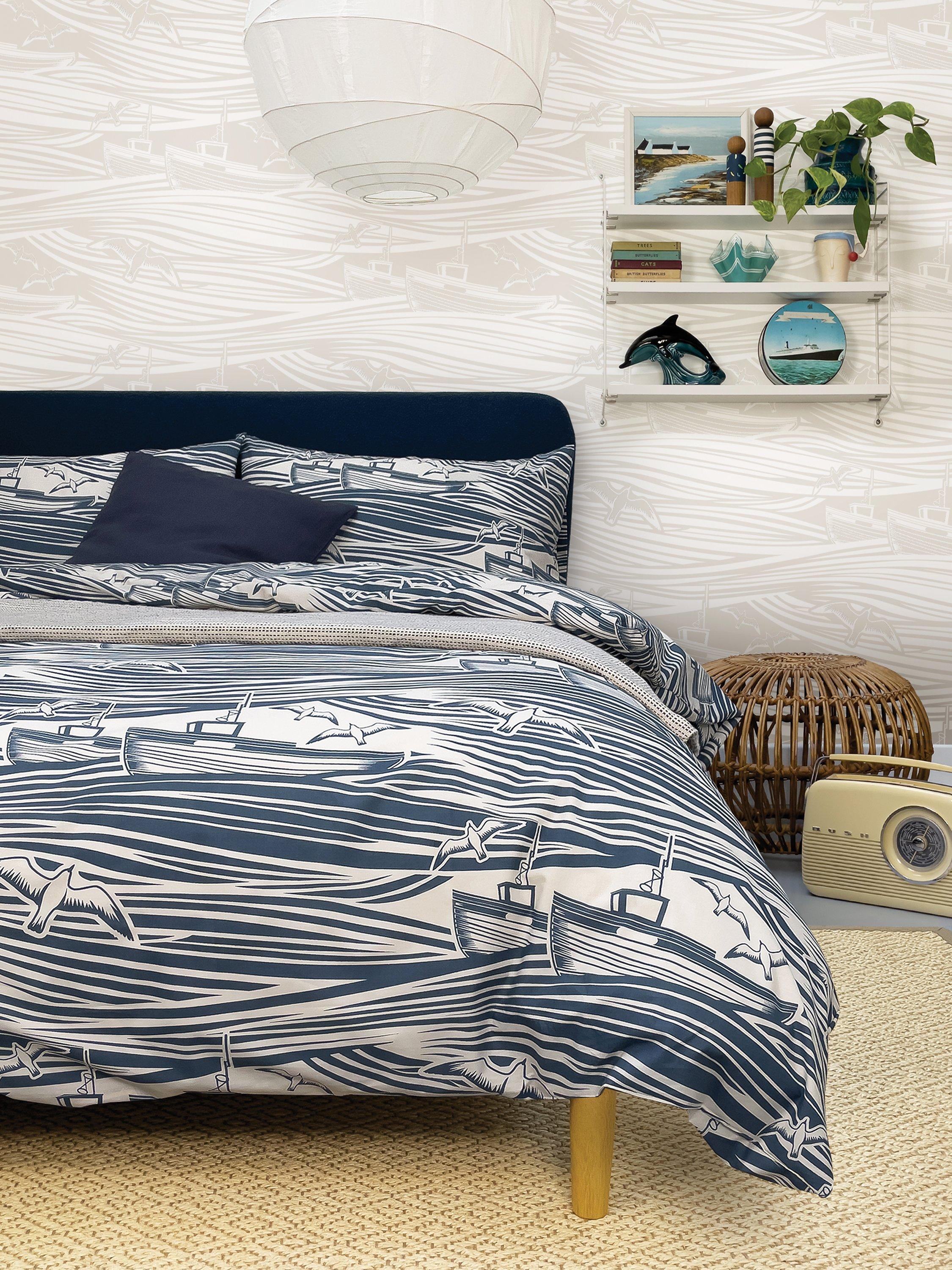 Ahoy!The bold wave motif of this Whitby cotton bedding captures the majesty of the open sea. Part of the Day-tripper collection, this pattern was inspired by the North Yorkshire coastal town where Mini Moderns designers, Mark and Keith spent their childhood holidays.