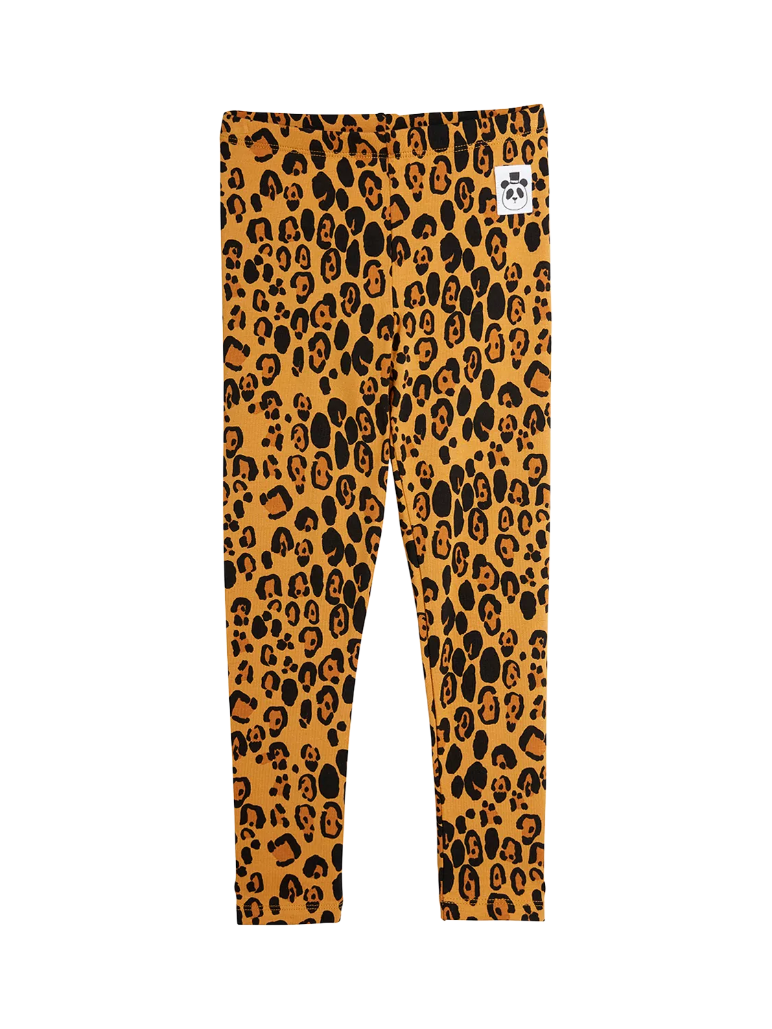 Soft and stretchy leggings with an all-over leopard print, comfy elastic waistband and a sewn-on Mini Rodini Panda label at the front.
