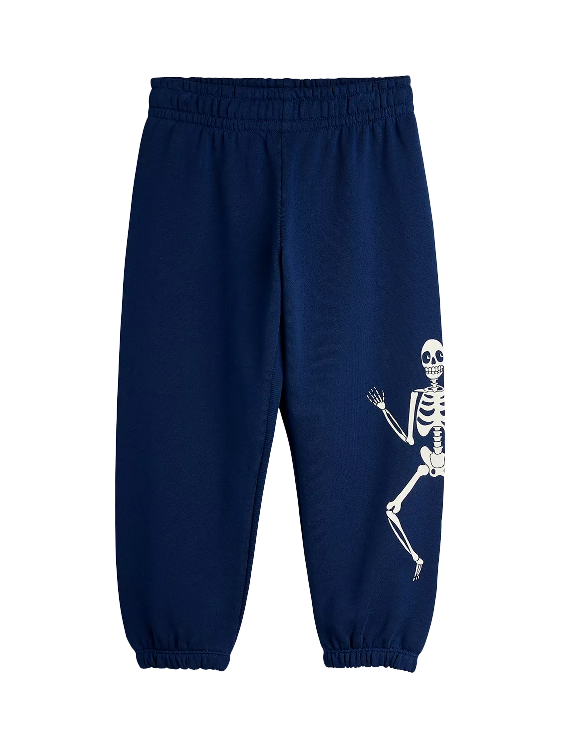 Sweatpants with elastic trims and hidden drawstring. A graphic skeleton print on the leg adds a touch of spooky fun!