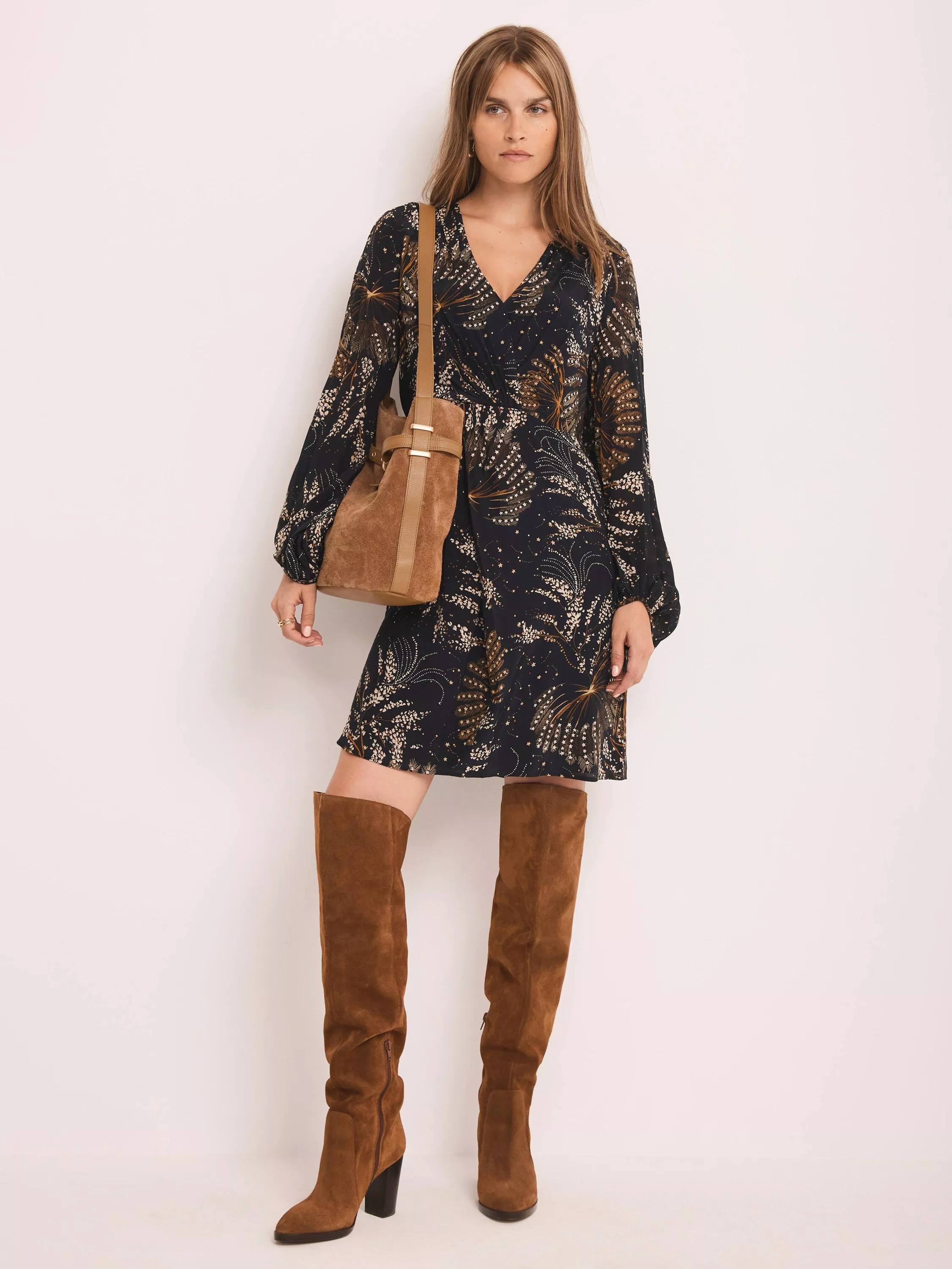 Wrap dresses are a classic for a reason. This long-sleeved mini dress from Mint Velvet features a V-neckline and intrigues with an abstract design.