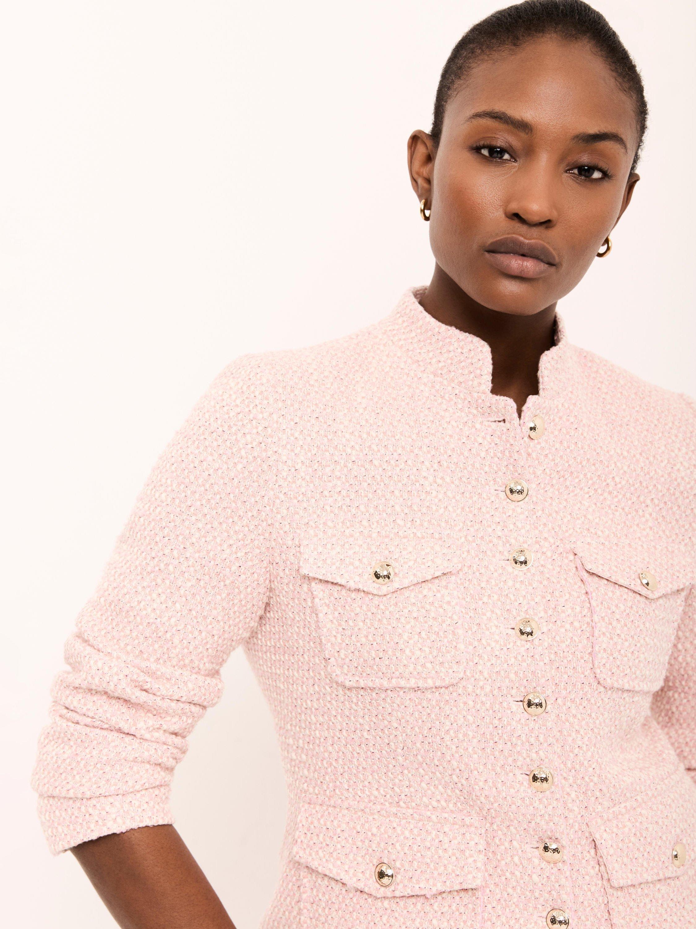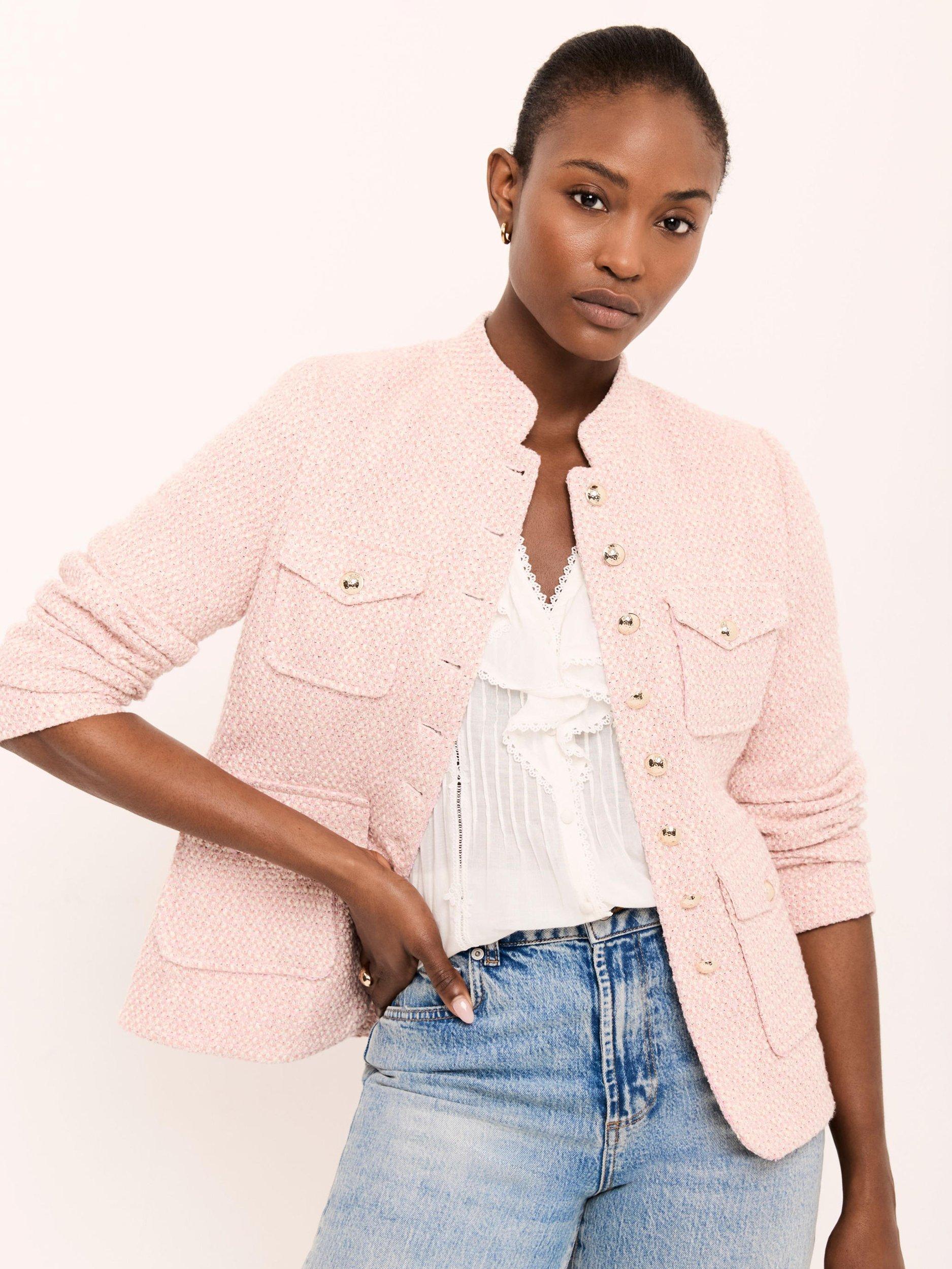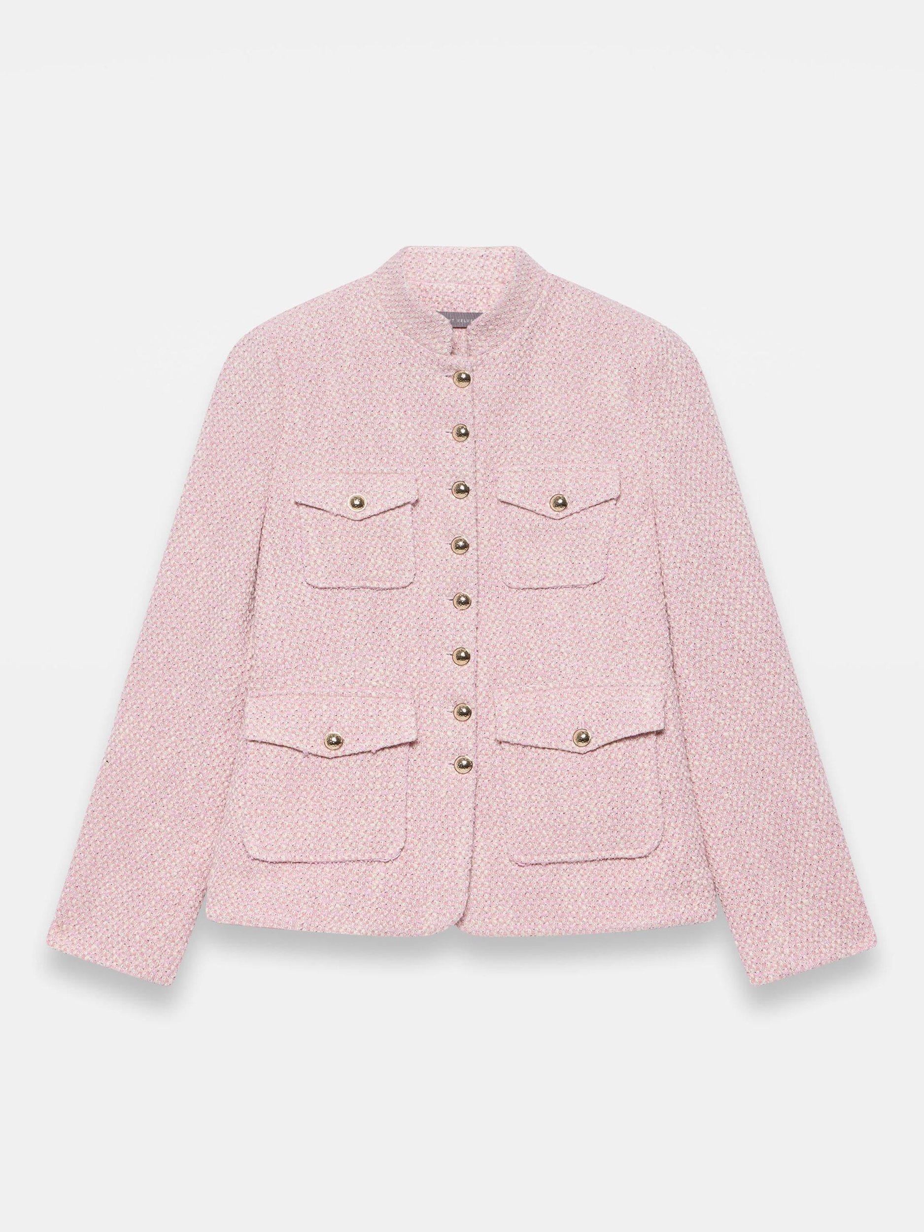 Mint VelvetAppliqué Trim Boucle Jacket, Light Pink