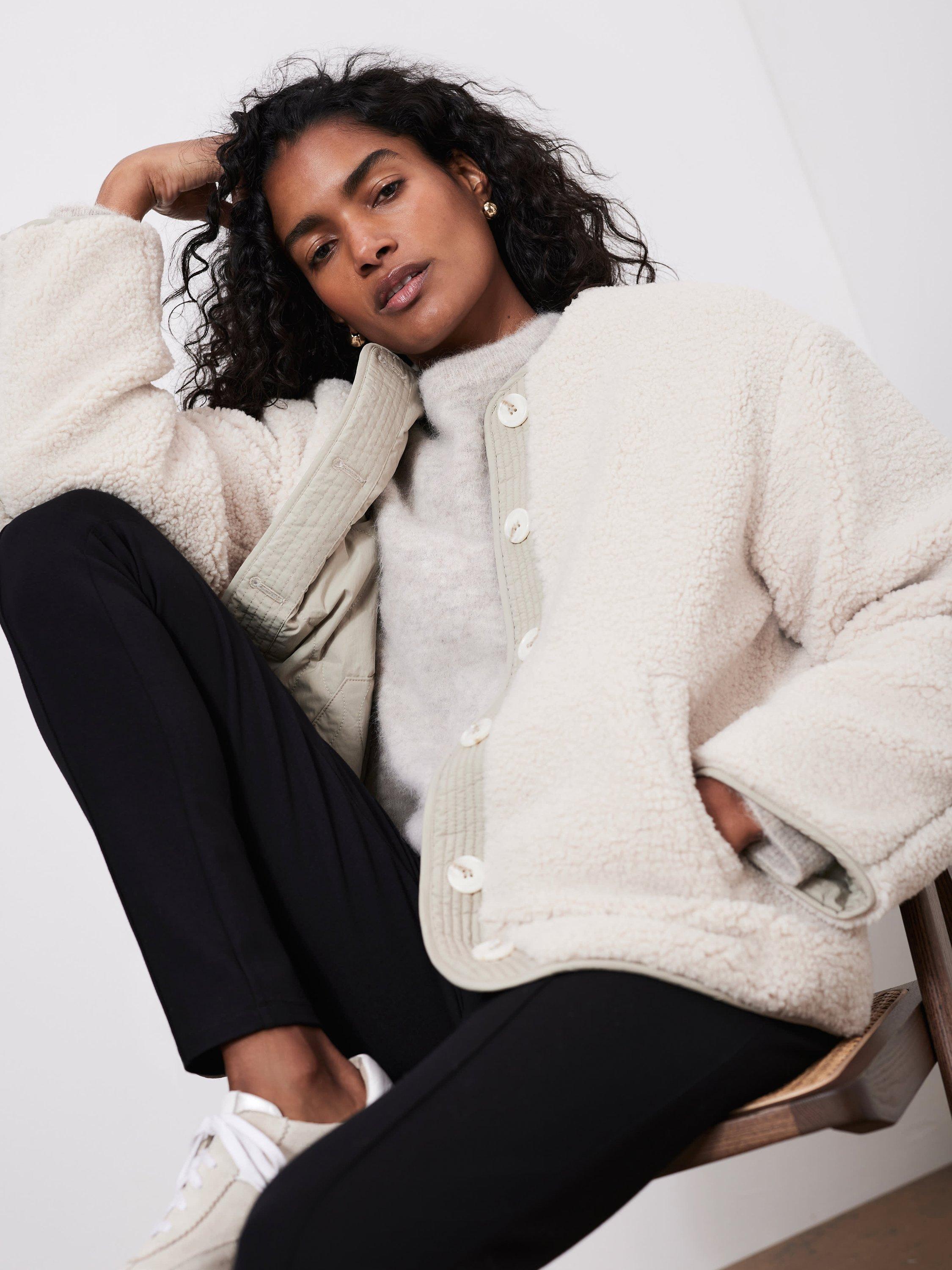 With the versatility of two looks in one, this reversible jacket from Mint Velvet is perfect for winter. Made from a rich cotton blend, you've got a cosy borg side and a quilted side to choose from.