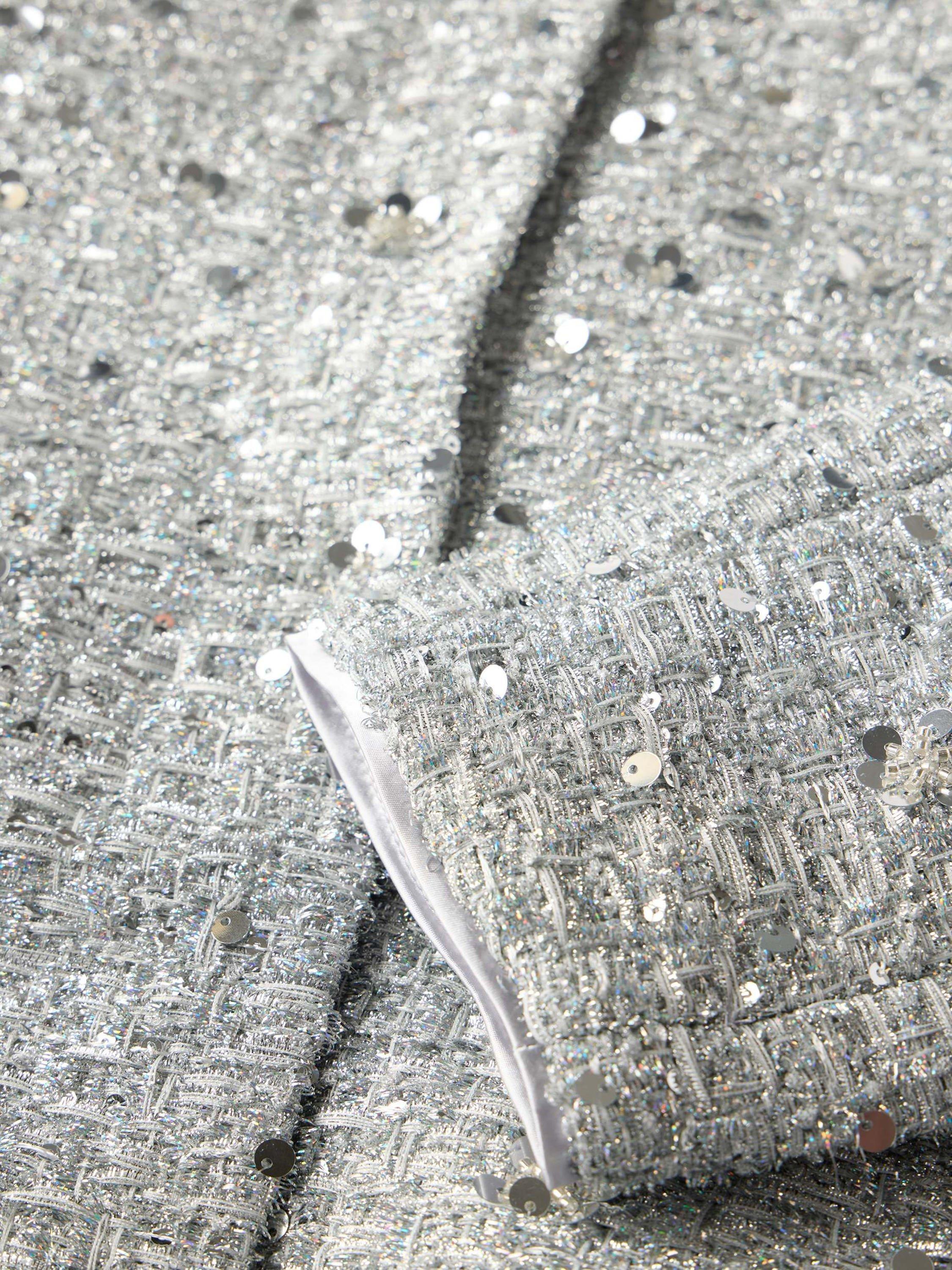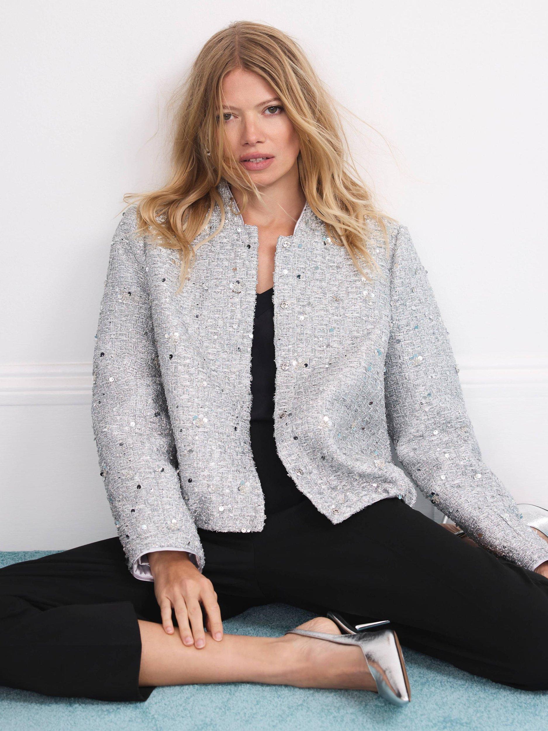 Add instant sparkle to your party look with this cropped boucle bomber jacket. The clever zip neck and sequin embellished design make it easy to wear, helping you stand out while feeling comfortable through every celebration.
