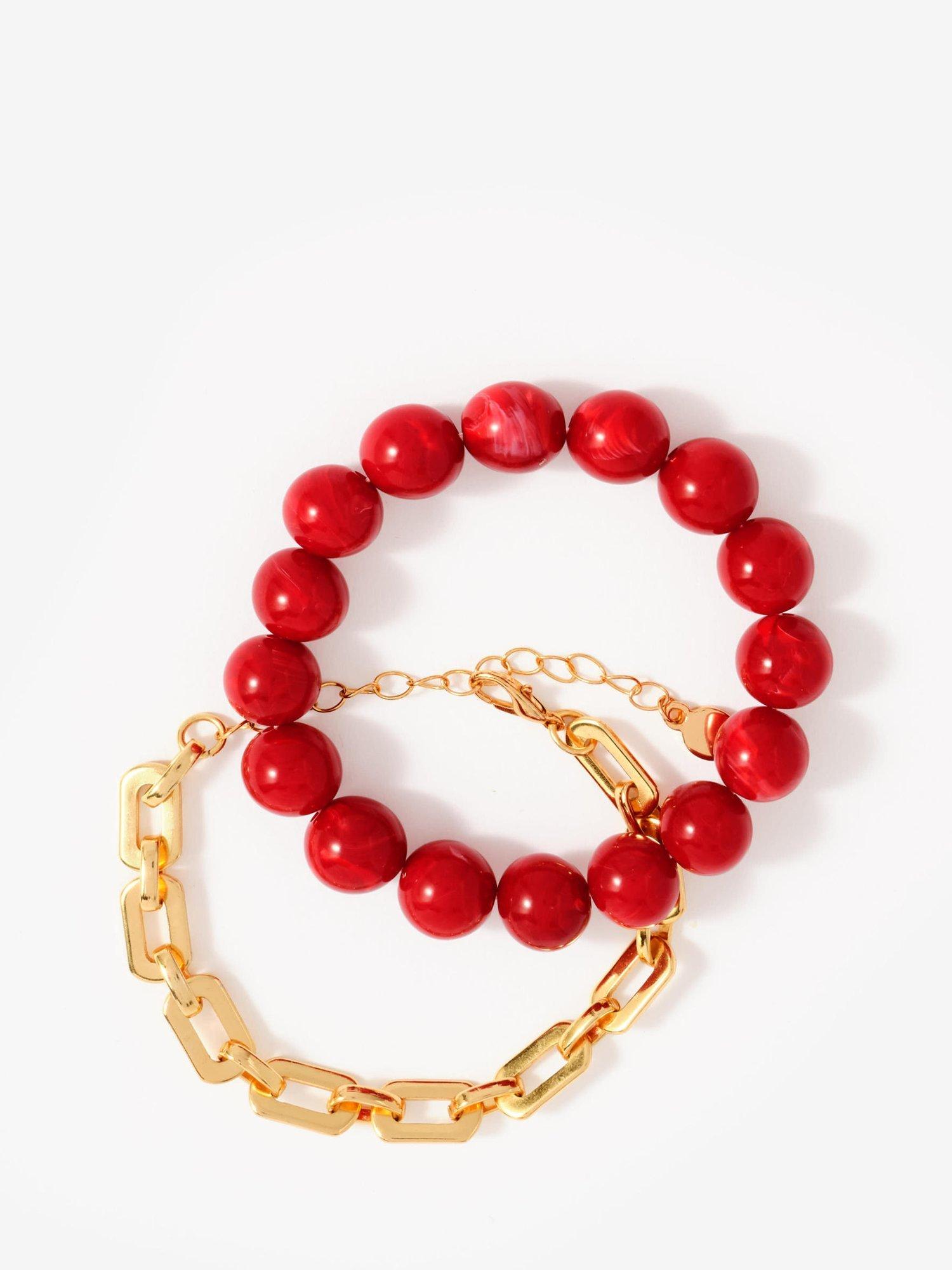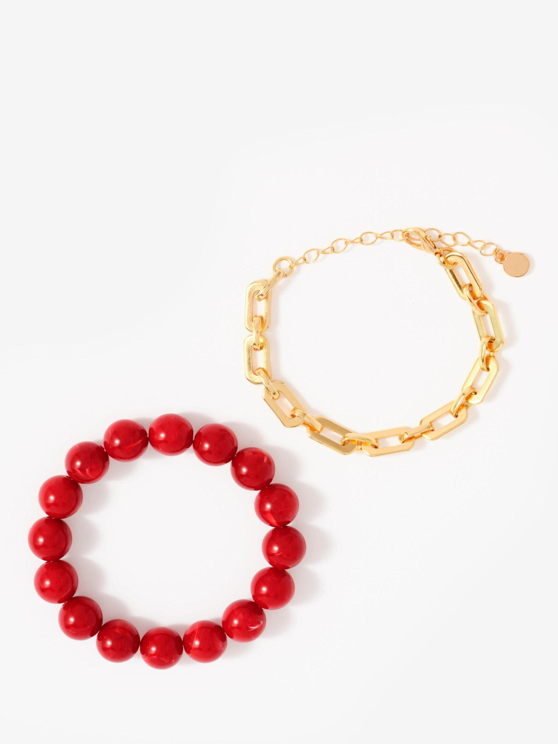 Mint VelvetChain Layer Bracelet, Red/Gold