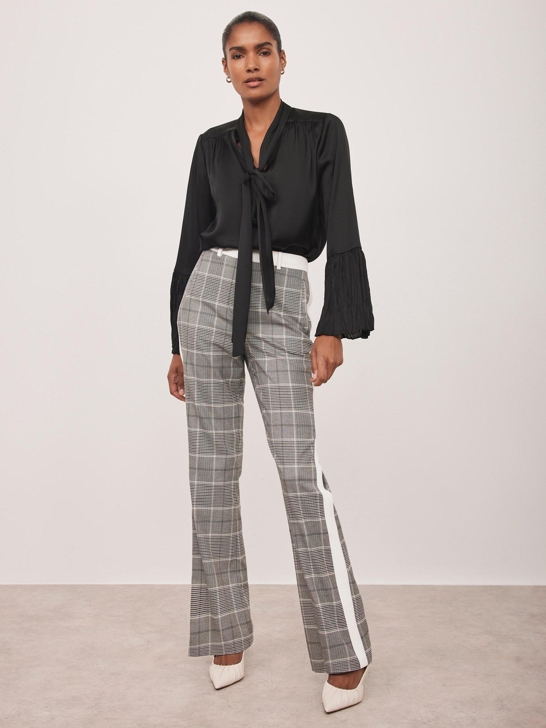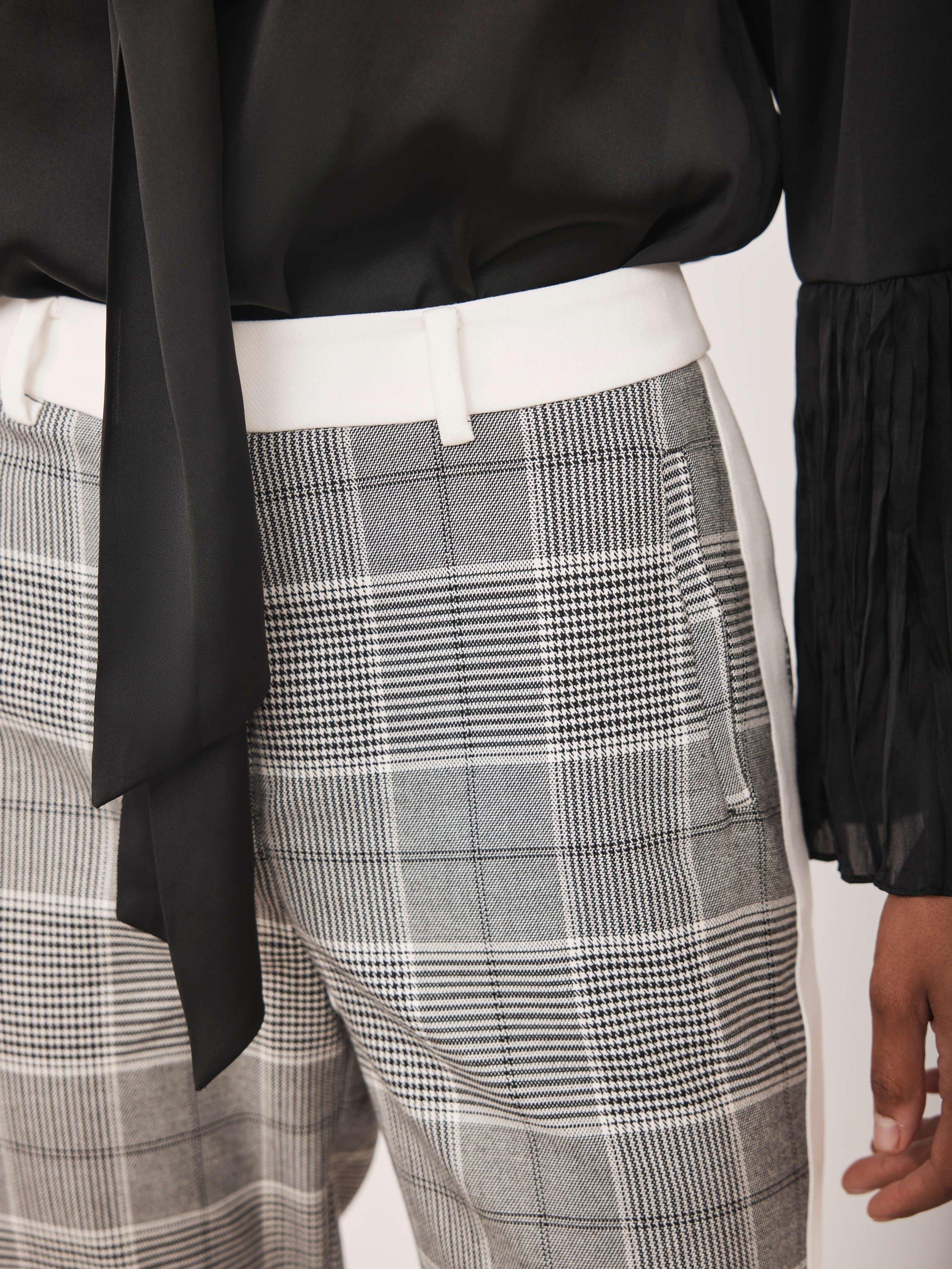Sleek lines meet sweeping hems in these flared trousers by Mint Velvet. They feature a mid rise with a zip fly, check print and a regular length.
