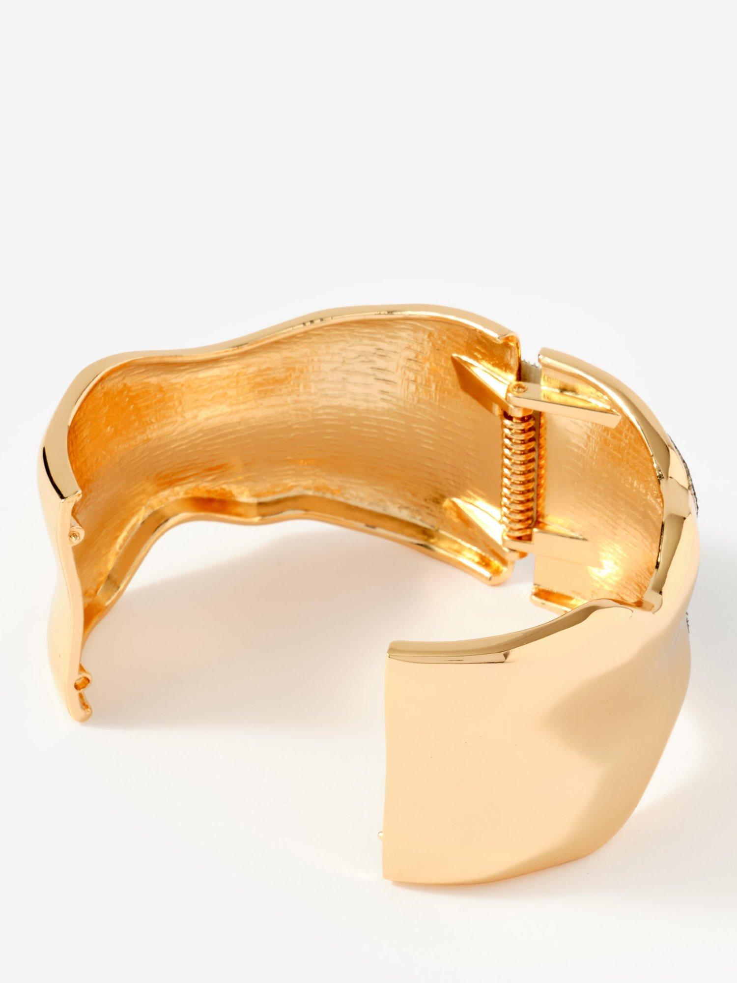 This sleek Mint Velvet bangle adds a refined touch to your style with a thoughtful wave design and a hinge clasp fastening.