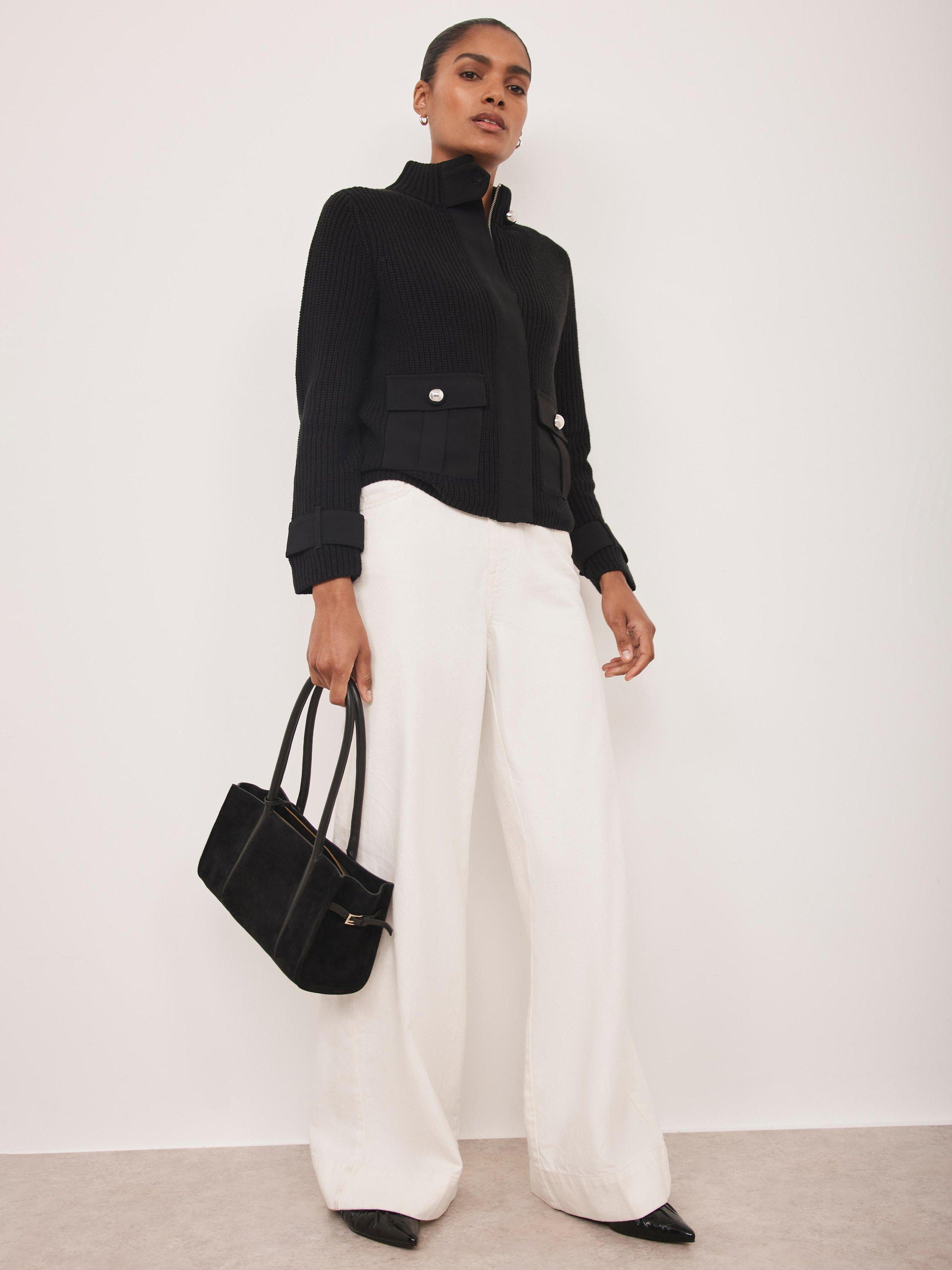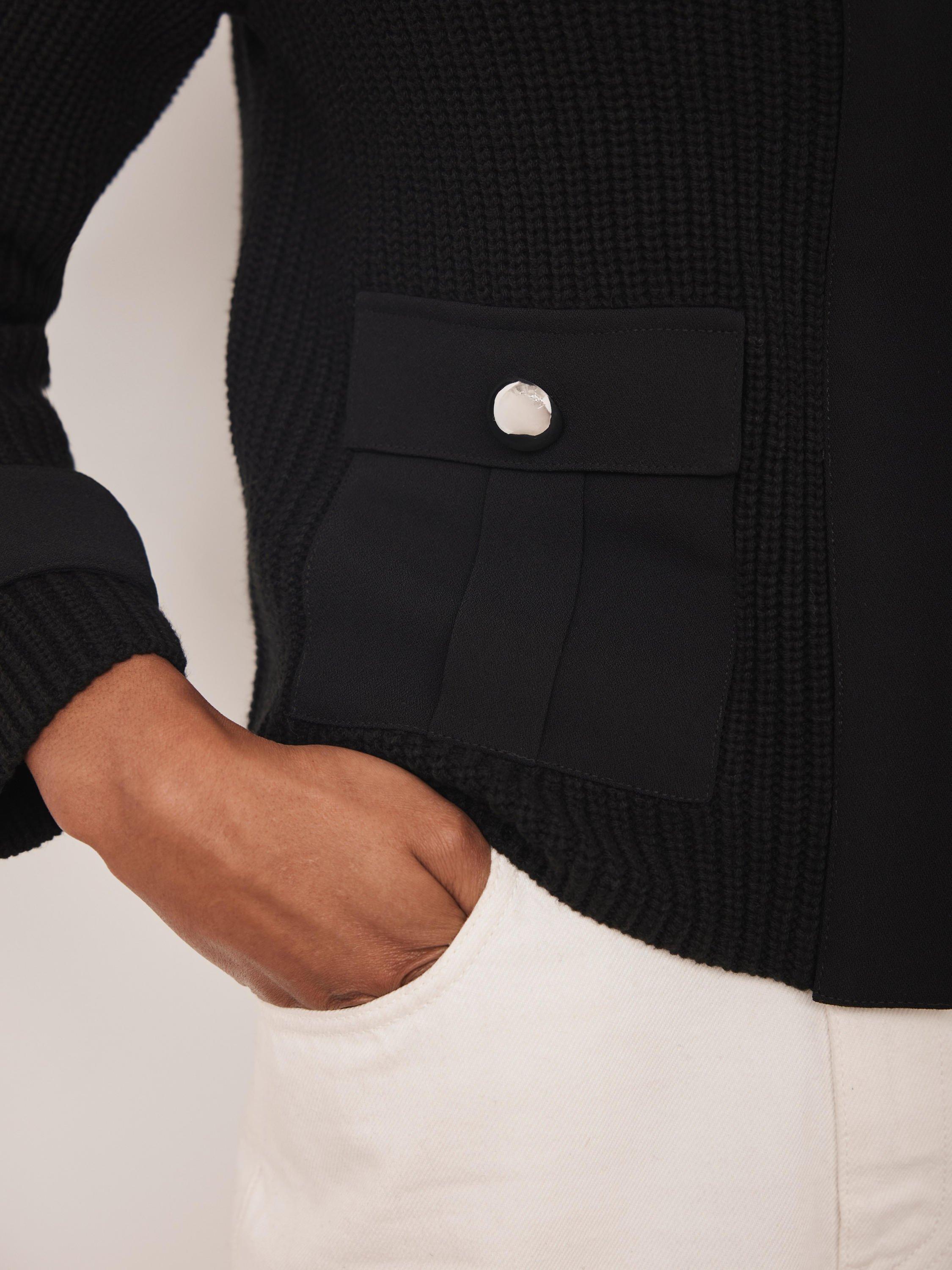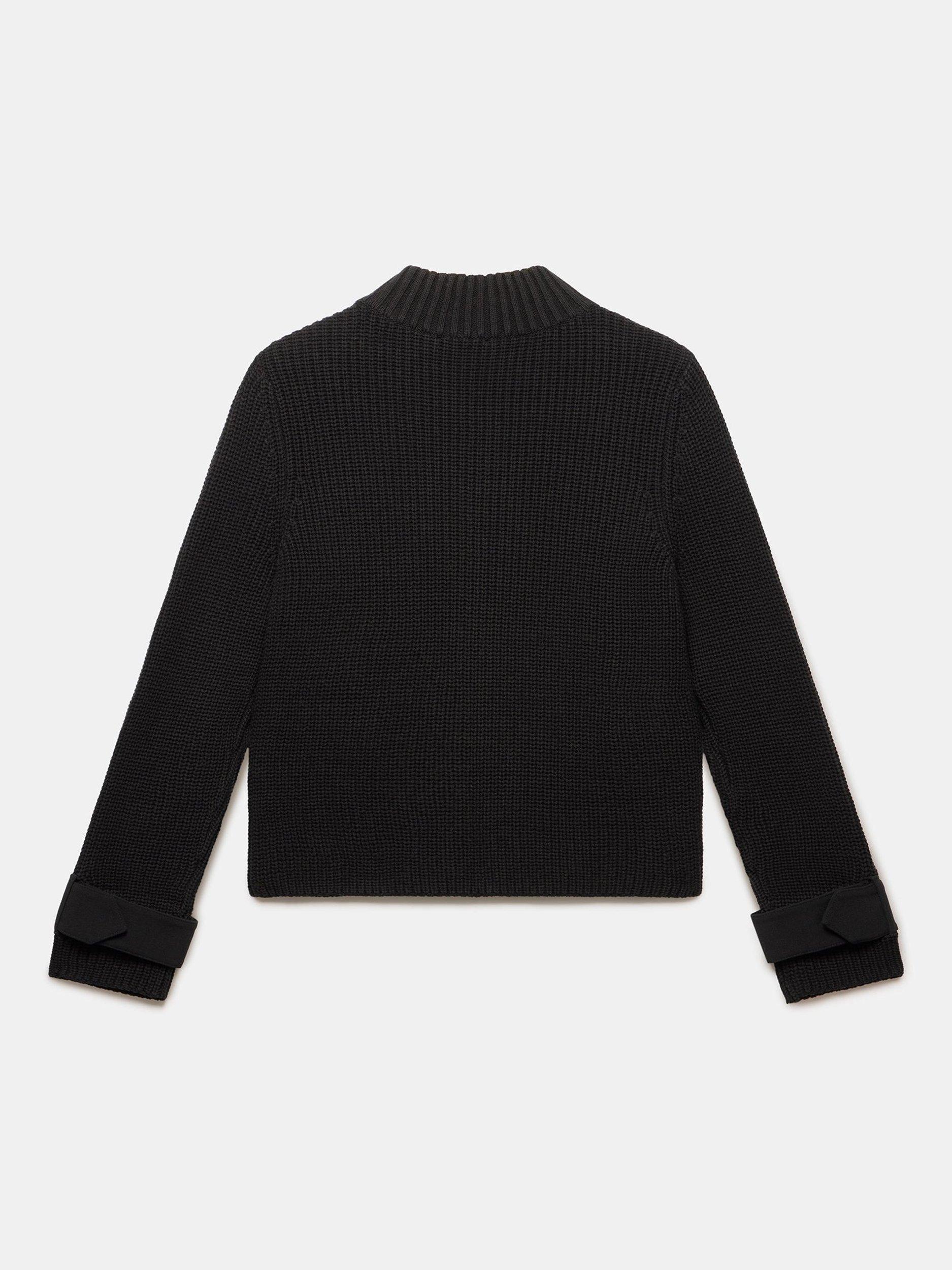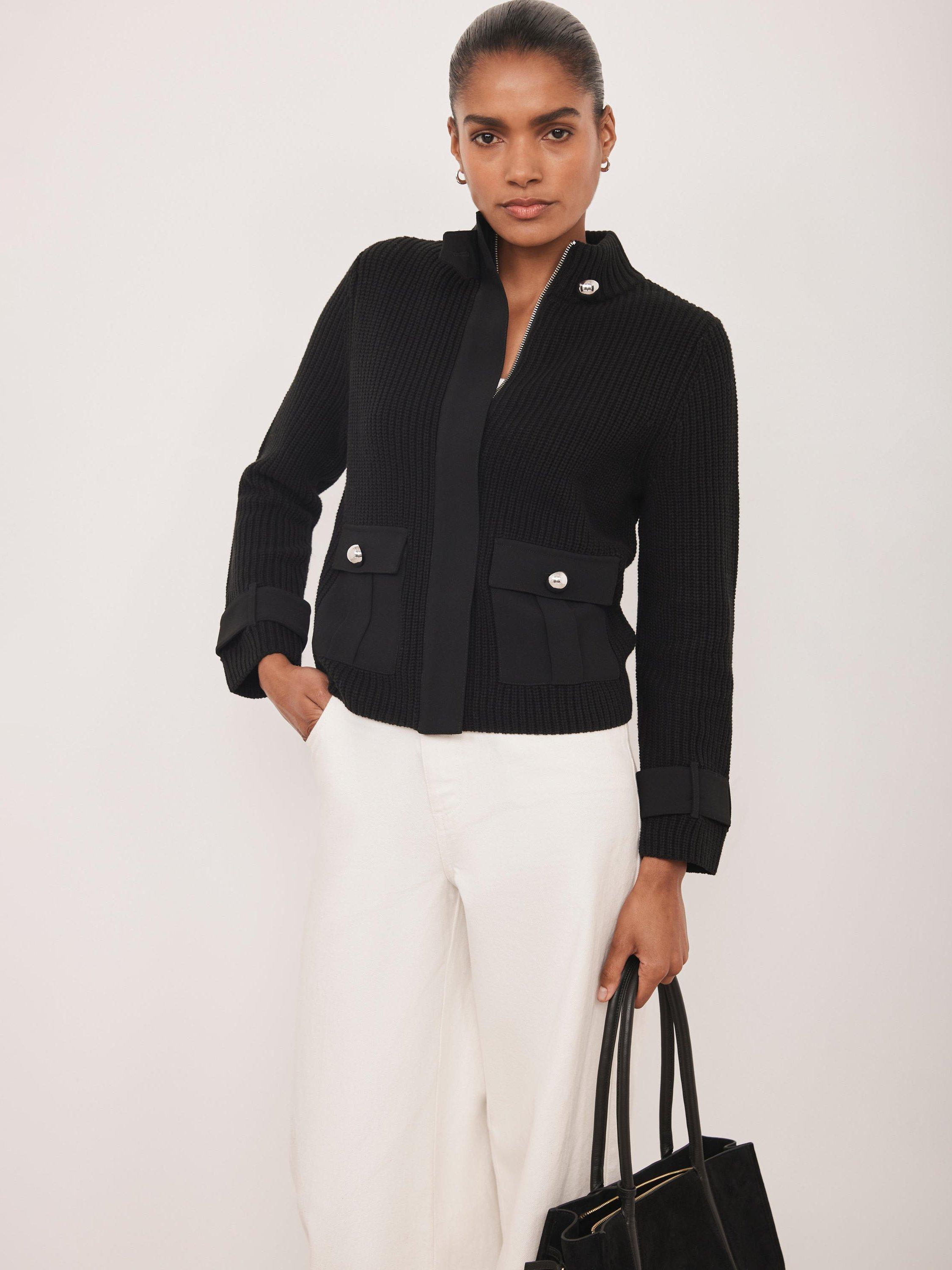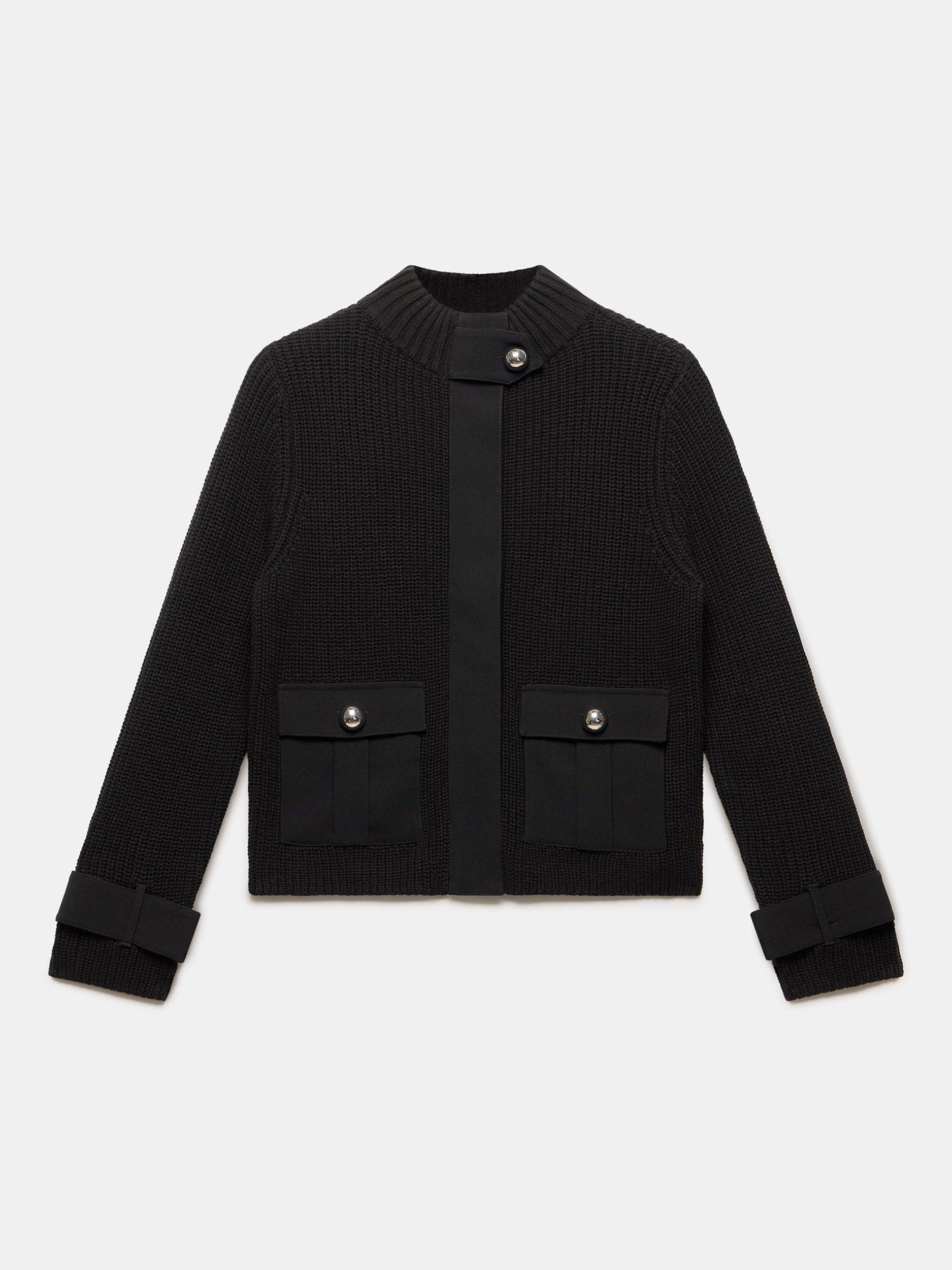 Crafted from a ribbed cotton blend fabric, this jacket offers a modern take on a classic. The high neckline with a buttoned tab collar provides a confident feel, while the long sleeves and discreet strap cuff detailing add a stylised touch. It's finished with button-down pockets and a concealed zip fastening.