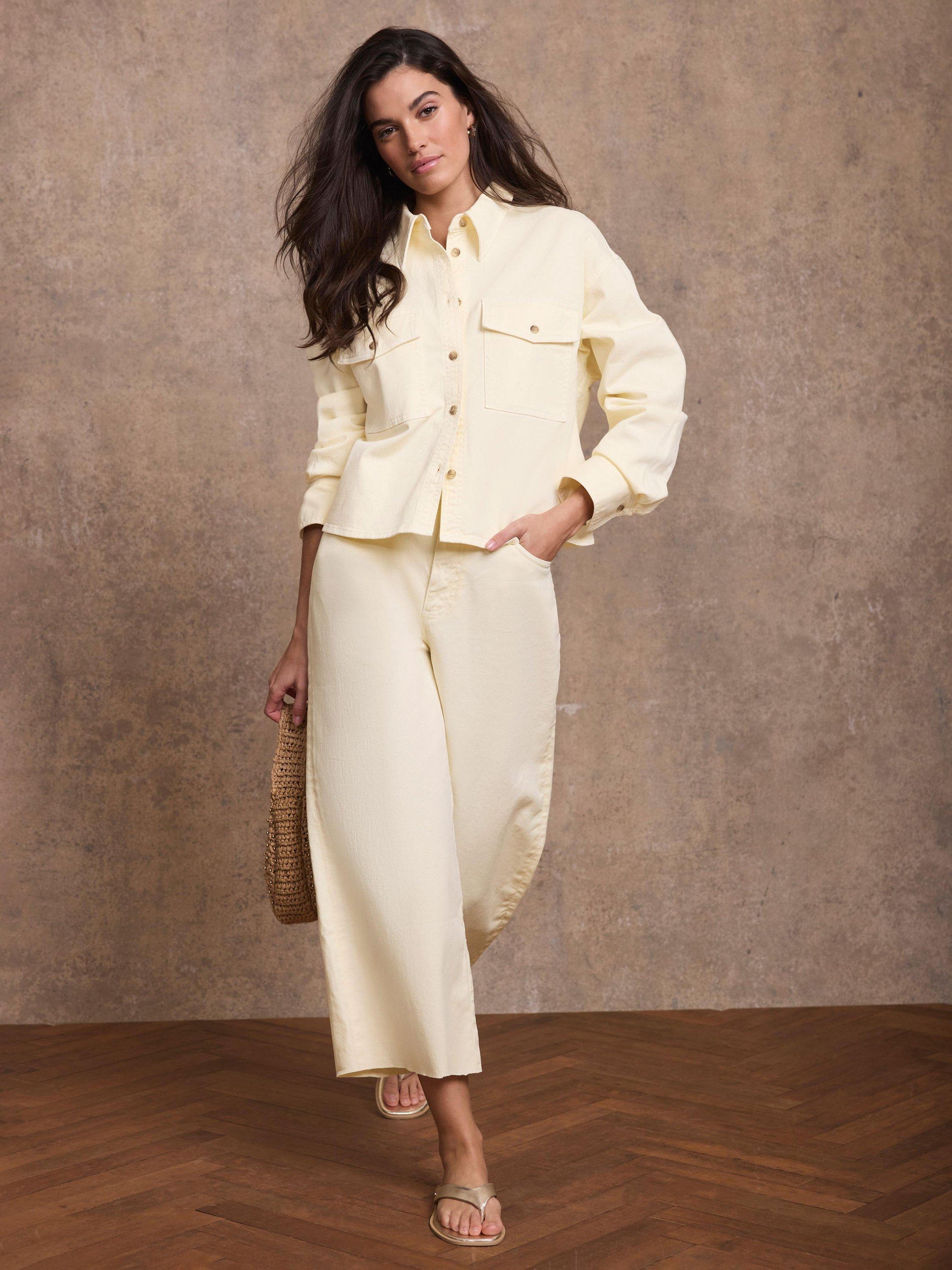 A crisp denim cotton-blend shirt, designed for comfort and ease. Its classic collar, cropped length and long sleeves suit both relaxed plans and spontaneous adventures.