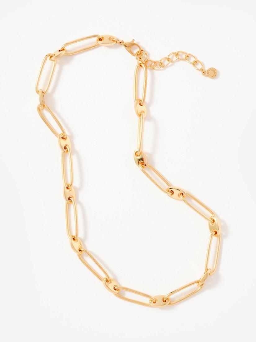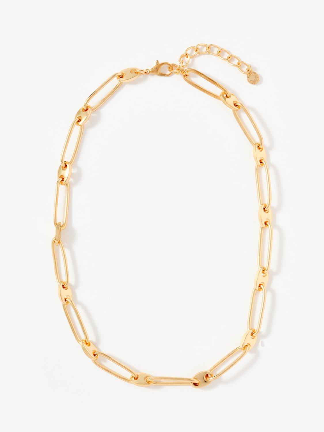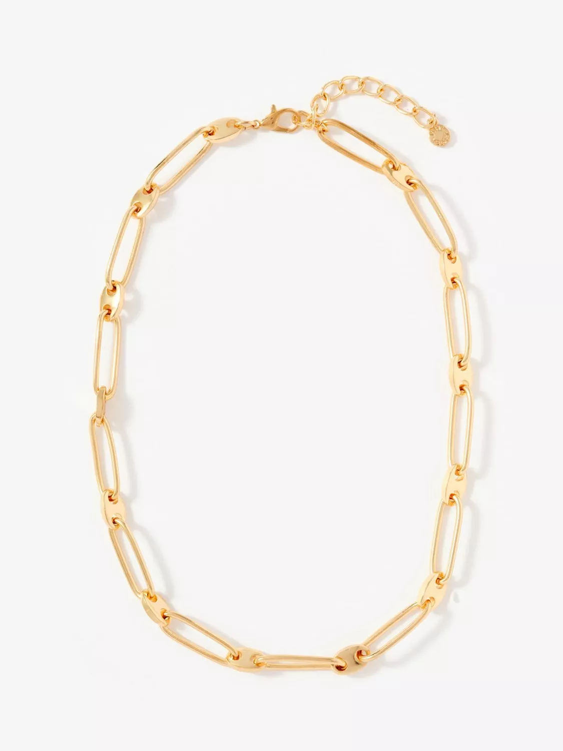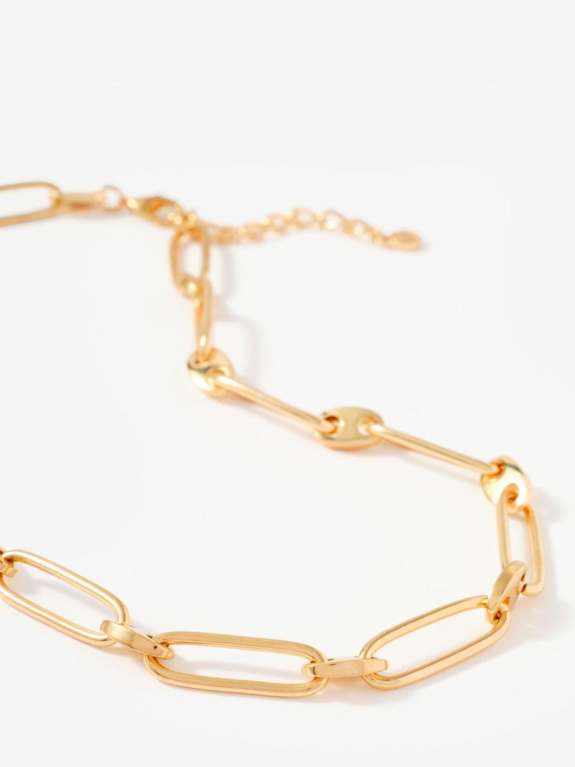 Gold-tone link necklace with disc detailing and an adjustable lobster clasp fastening.