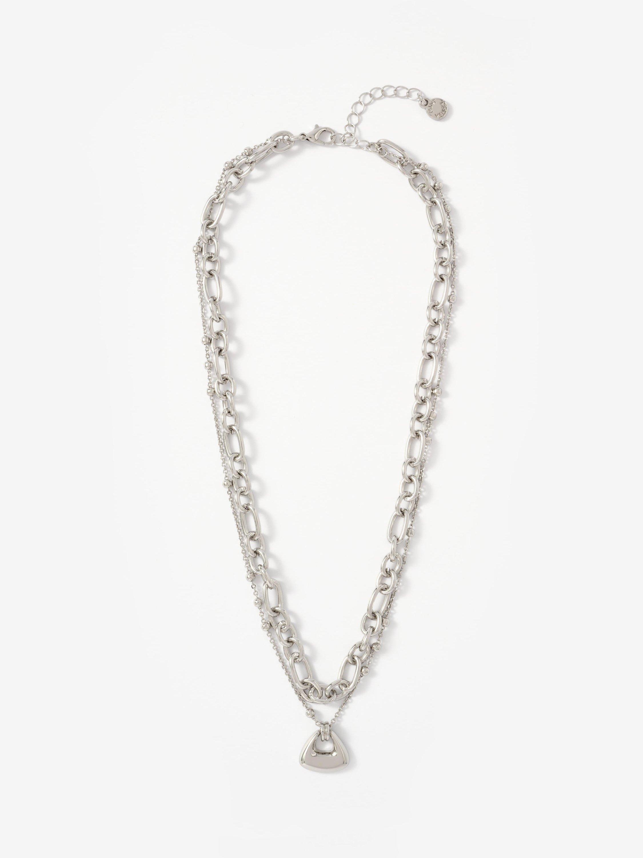 Mint VelvetDouble Layered Necklace, Silver