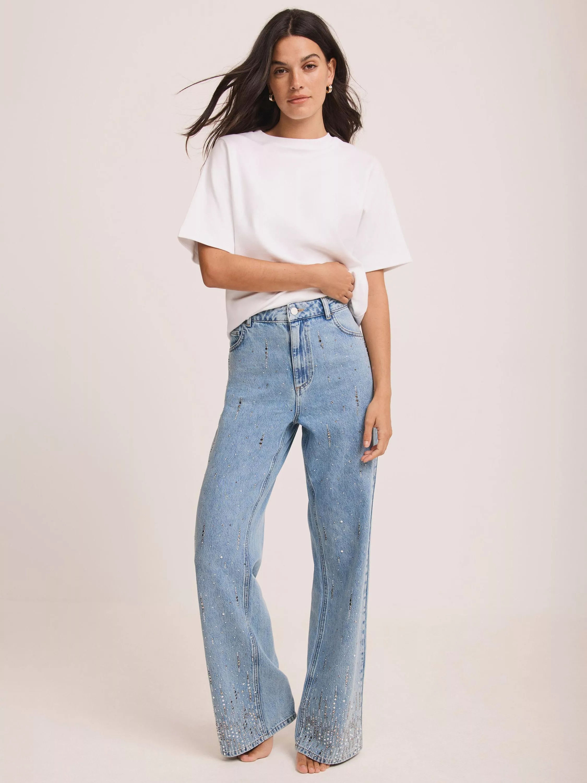 A pair of characteristically wide legged jeans from Mint Velvet. Made from pure cotton with a comfortable mid rise and a button and zip fastening, they fall to a full-length.