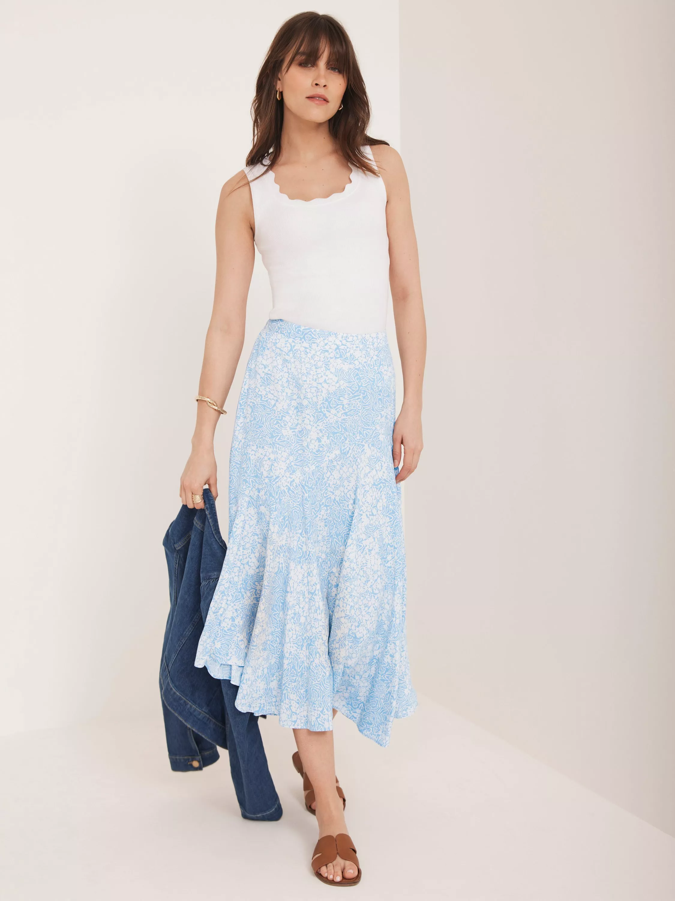 A floral print skirt with asymmetric hemline and a zip fastening through the back.