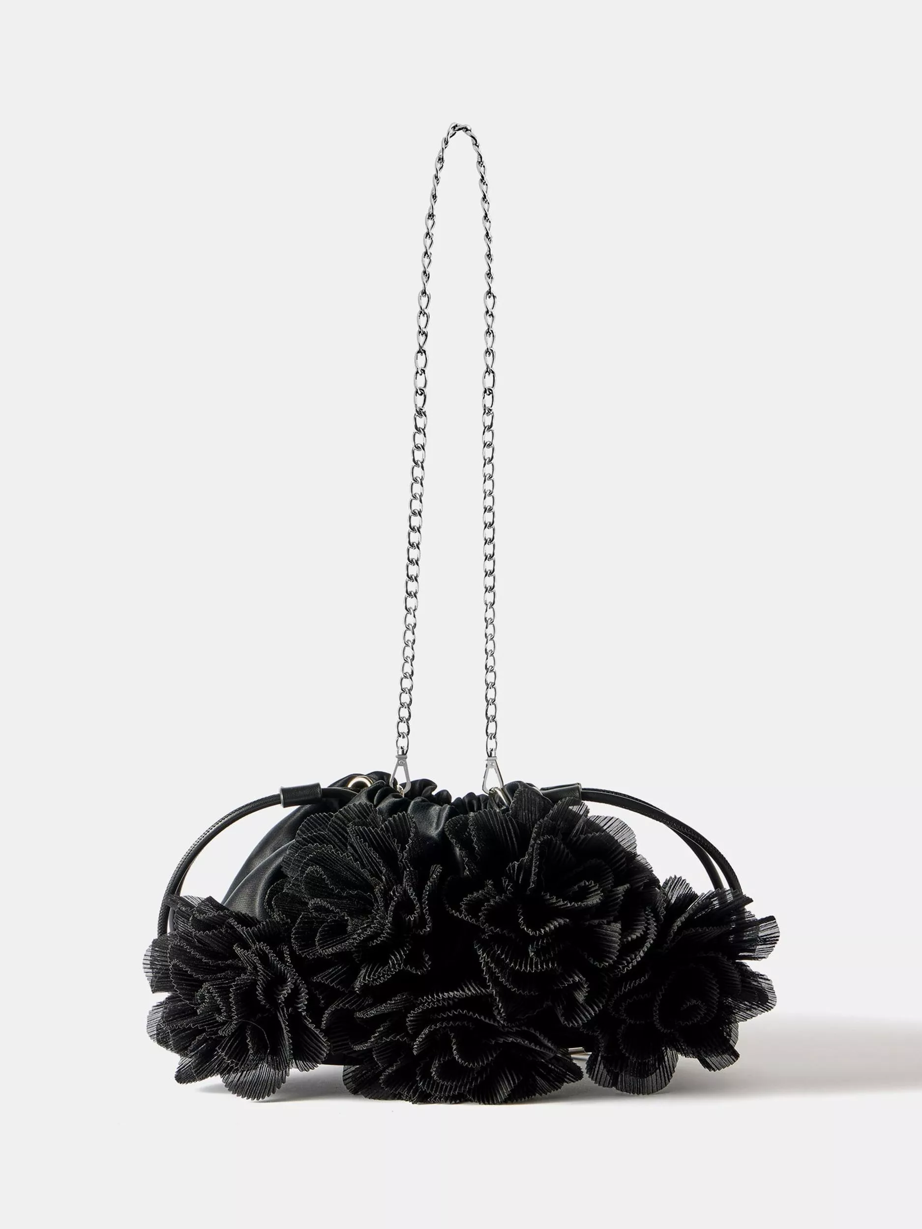 Designed with a three dimensional floral effect, this bag from Mint Velvet comes with a silver-tone detachable shoulder strap and a drawstring closure.