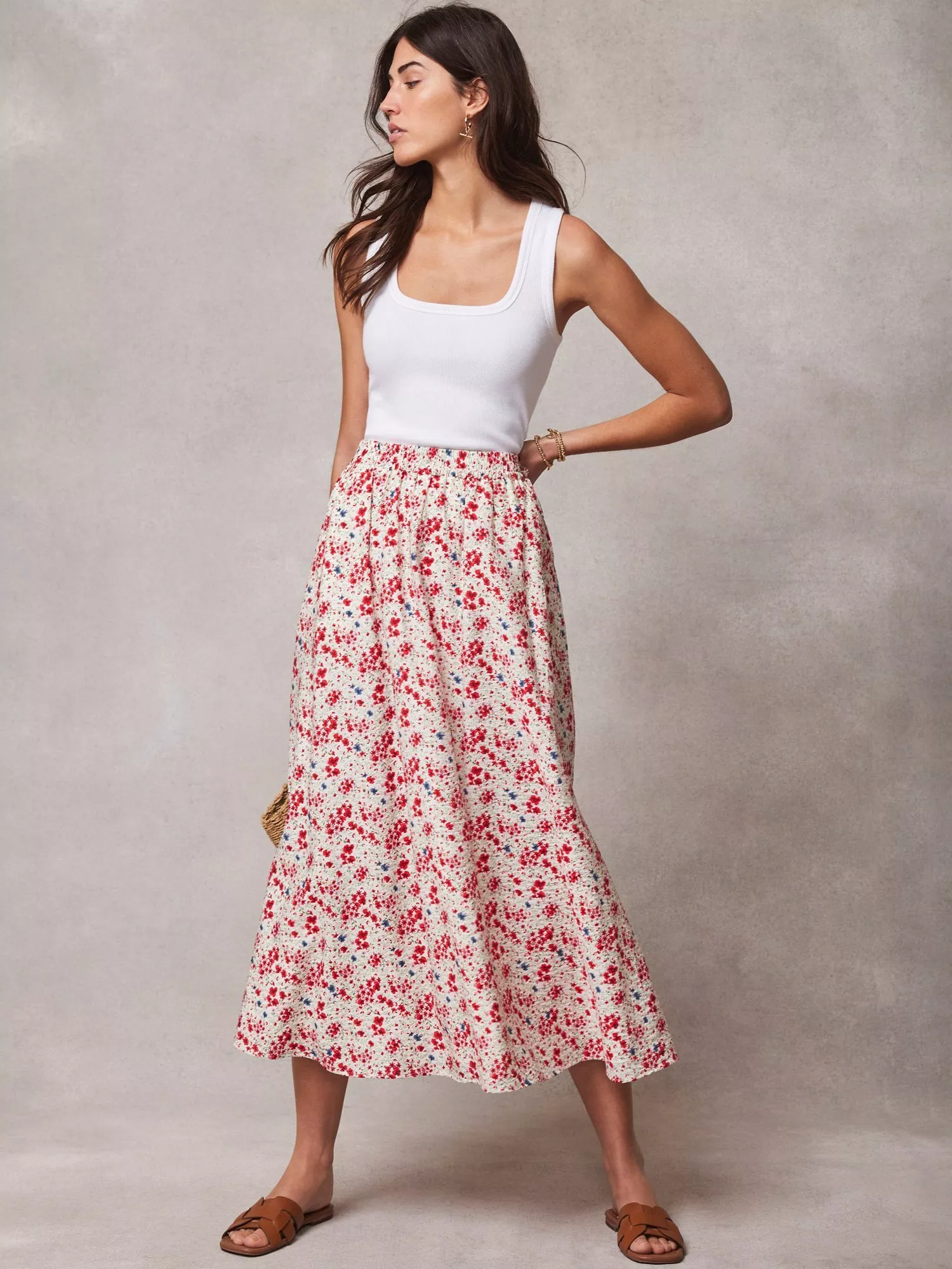 Flouncing into tiers, this A-line calf-grazing skirt from Mint Velvet is proof that florals are groundbreaking all year round.