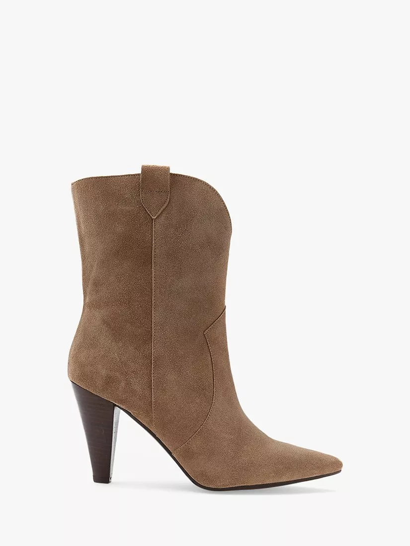 Cut to an ankle-high silhouette, this Western inspired pair of boots from Mint Velvet offers an elegant touch to your ensemble with its soft suede uppers.