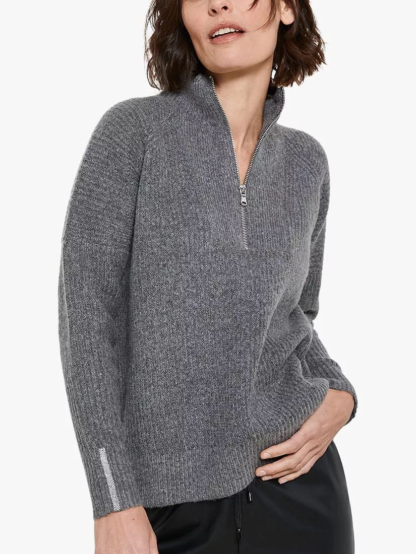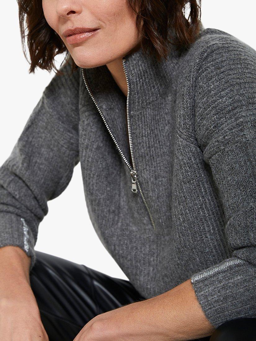Spun with a touch of wool for warmth, this jumper from Mint Velvet is knitted in a slightly oversized silhouette with long sleeves. It's designed with a half-zip funnel neckline and features considered details, from stitching around the neck to silver tipping on each cuff.