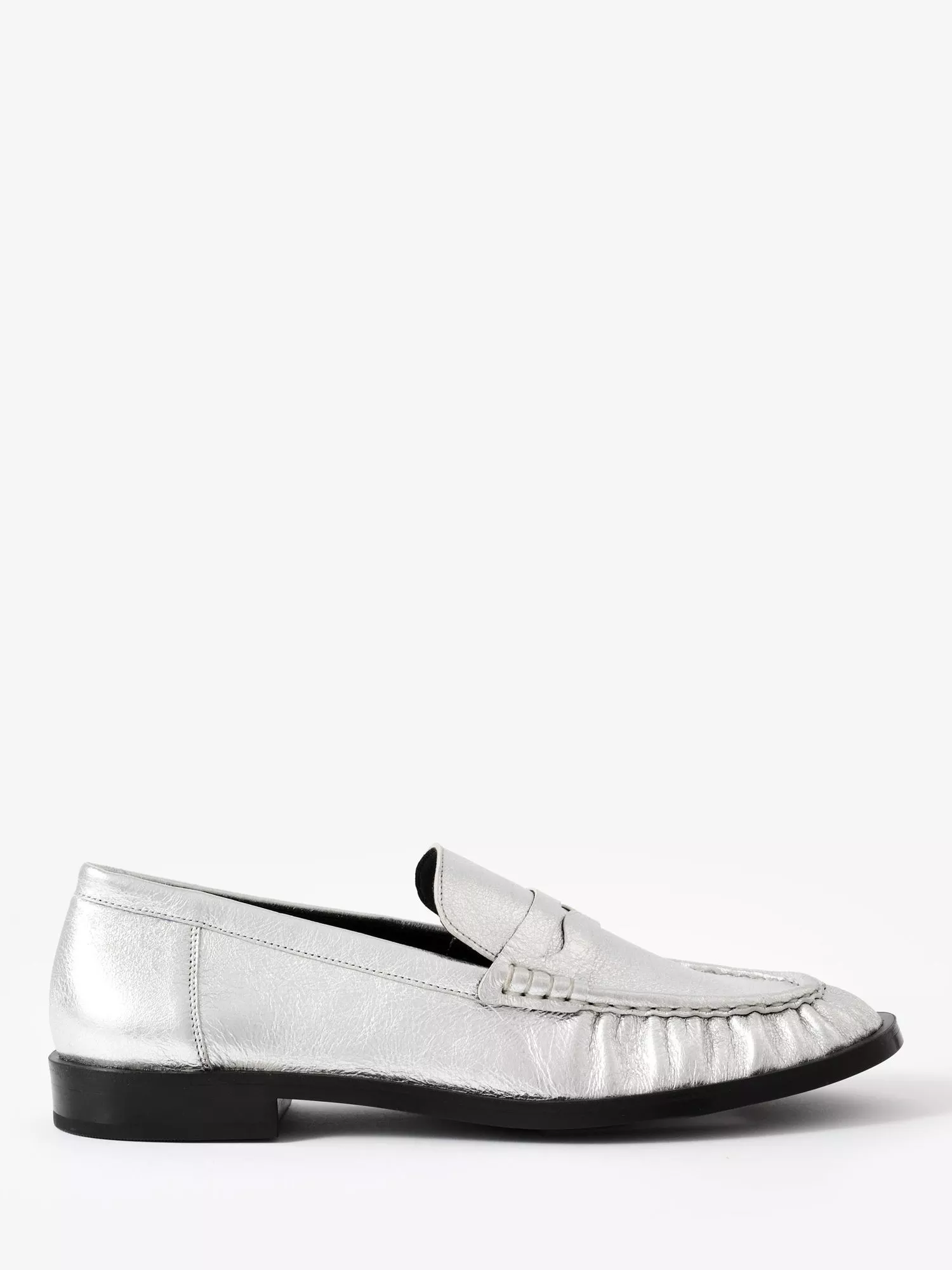 Slip on and go with these metallic loafers. The round closed toe keeps you comfortable all day, while the leather upper lends a refined touch to your usual routine. Finished with a contrast flat sole, a round toe, cut-out detail and ruched edging.