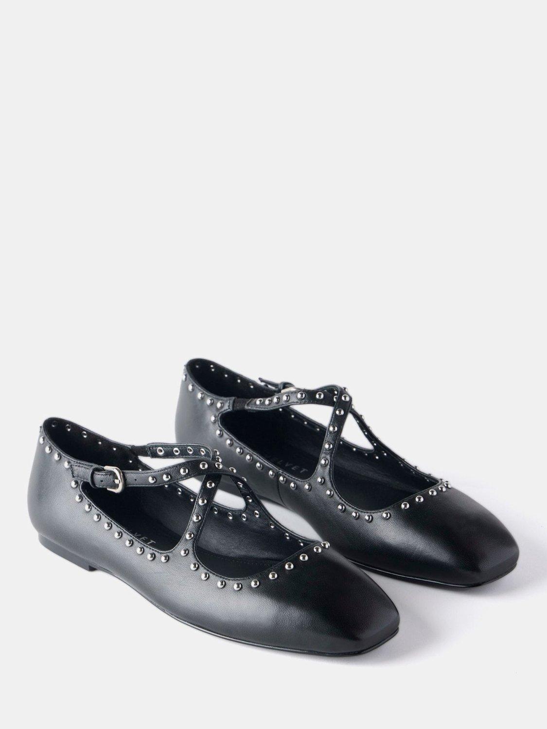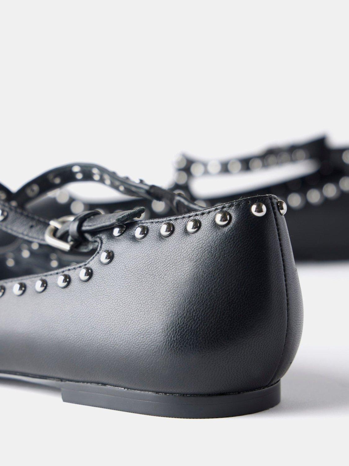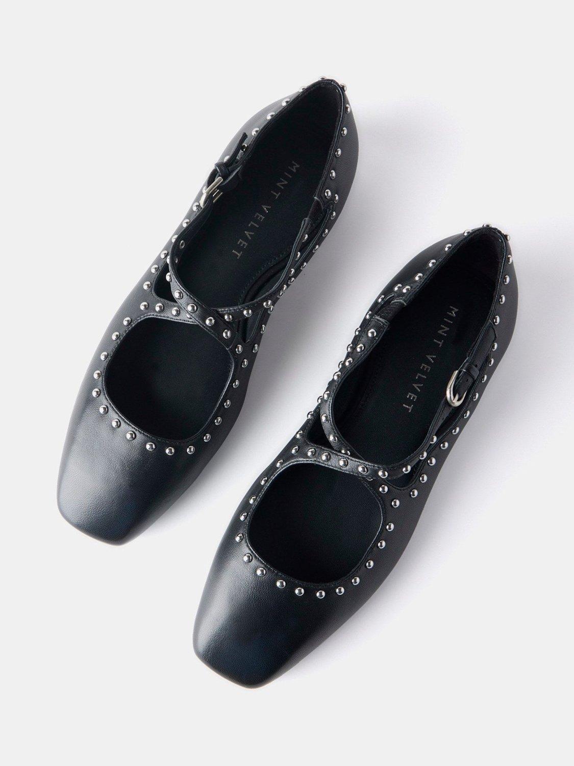 Reworking the classic ballerina pump, this cross strap style from Mint Velvet is made with supple leather with studded detailing.