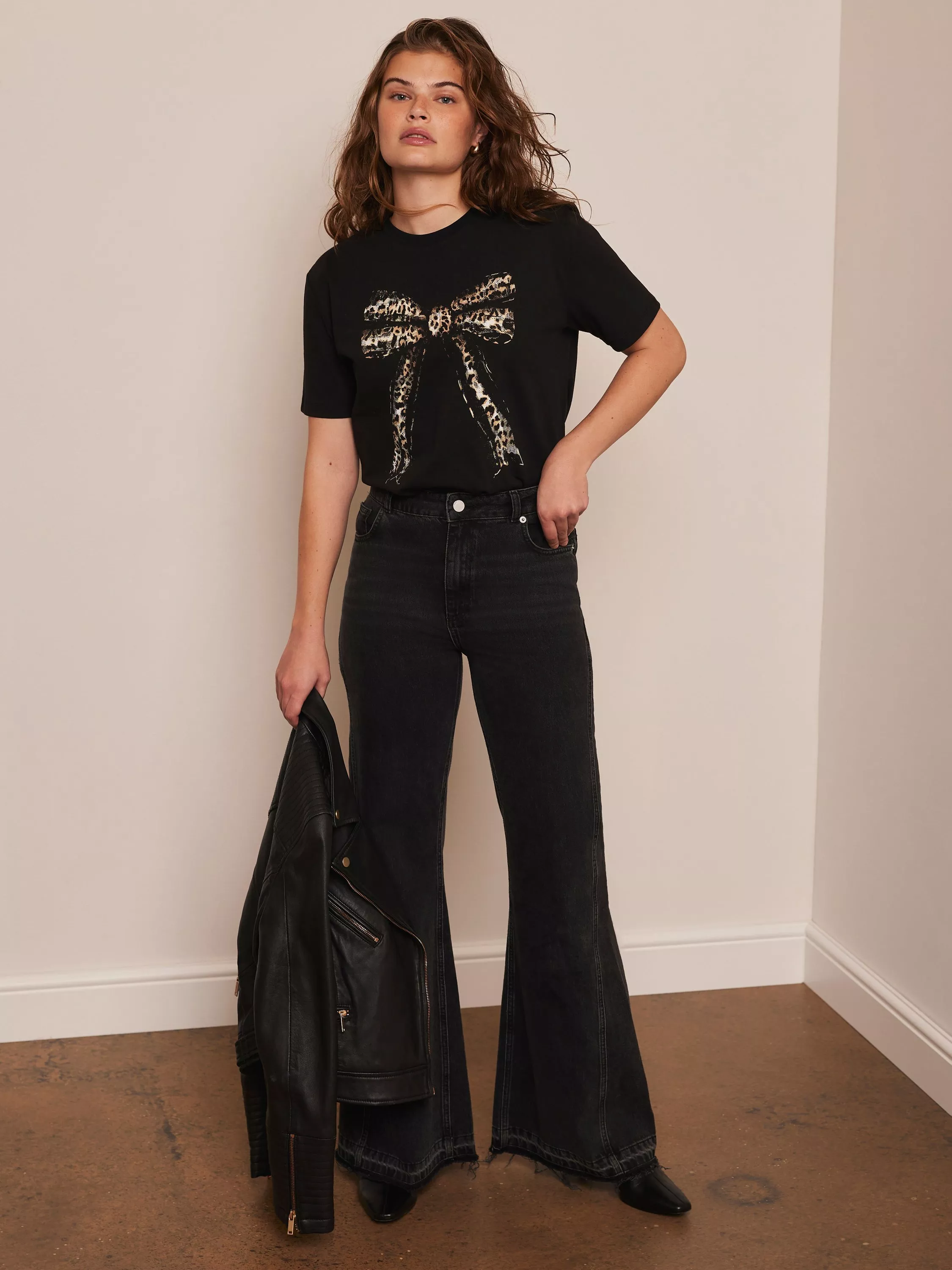 A pure cotton t-shirt with a crew neckline, short sleeves and leopard print bow motif.