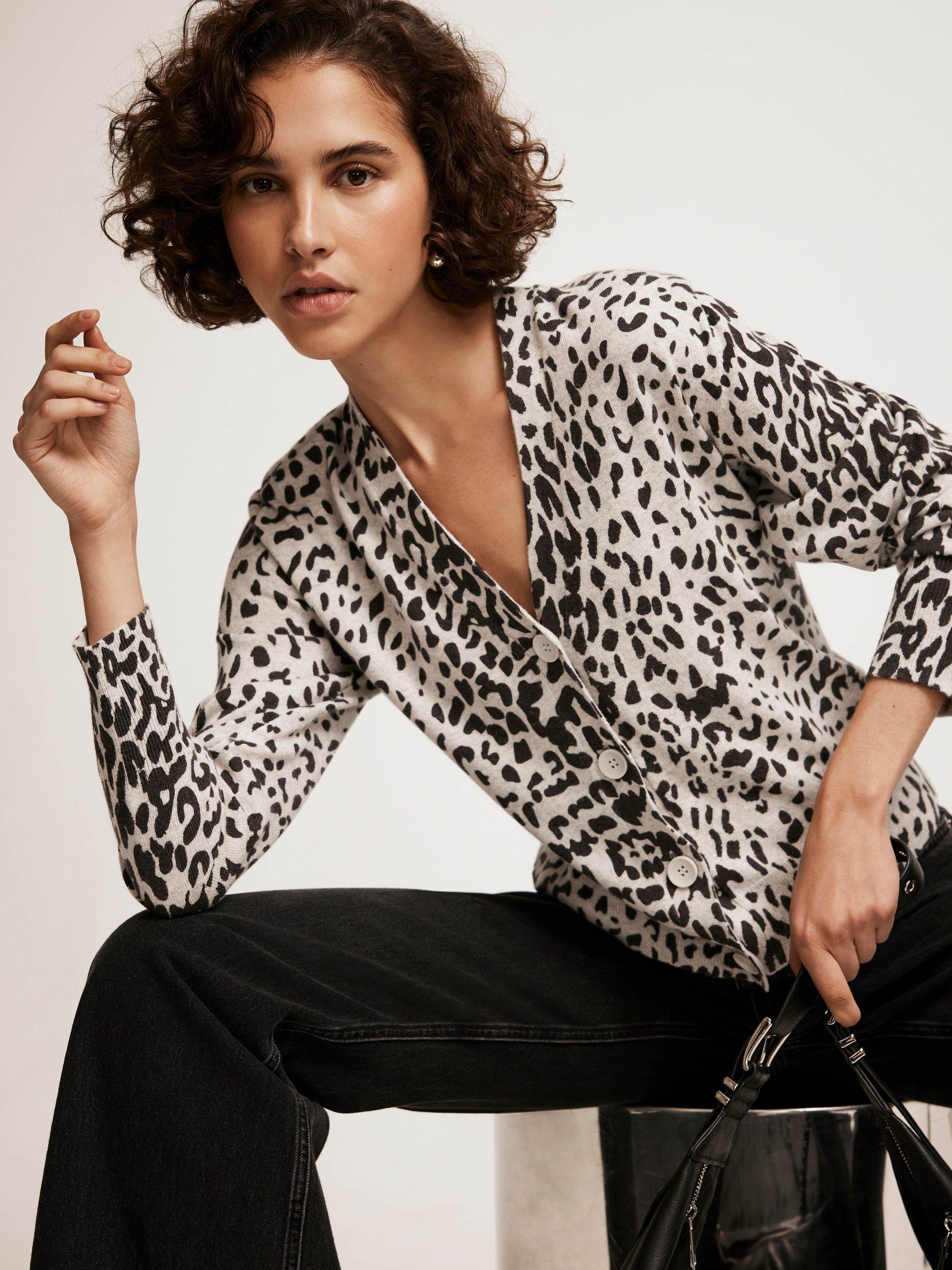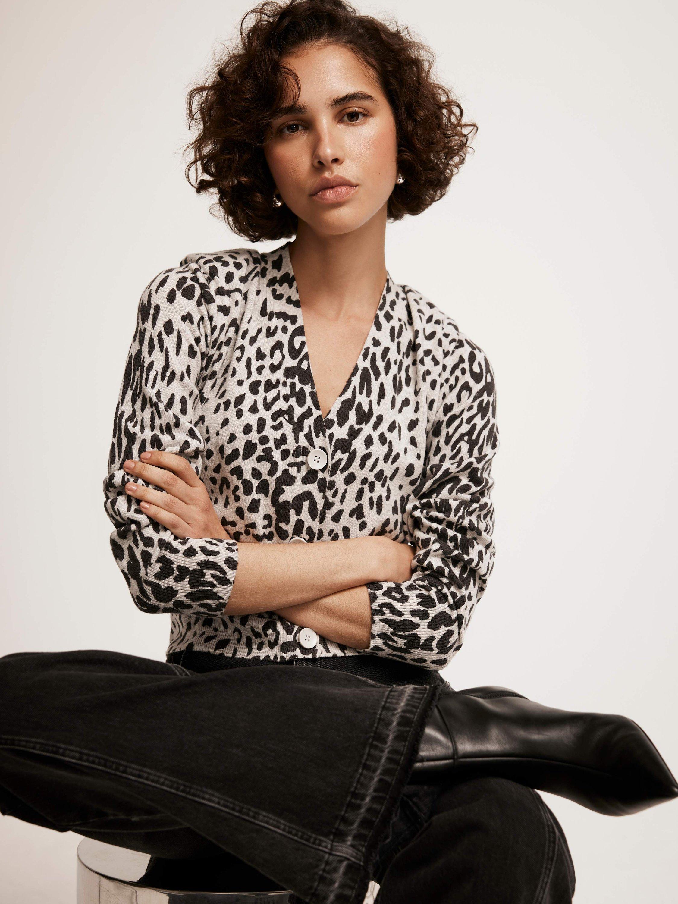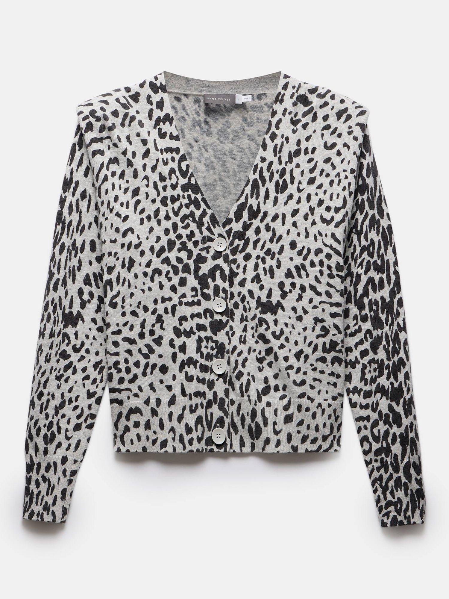 A handy layering piece for when the temperature cools, this leopard print cropped cardigan from Mint Velvet features a V-neckline, extended shoulders, long sleeves with a button fastening through the front.